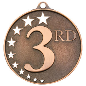 This bronze medal offers a durable and refined way to honour third place achievement across a range of sports. Crafted from quality metal in a circular design, it features bronze and white tones, a bold '3rd' emblem, and star decorations. The thoughtful combination of colour and detail creates a memorable, professional recognition piece for any event.