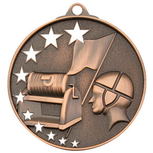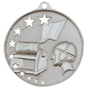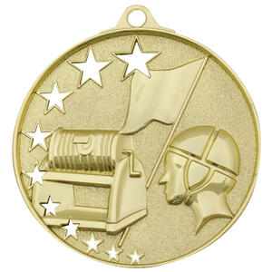 Crafted with precision for shooting sports recognition, this 52mm surf lifesaving medal features a circular metal design in bronze, silver, or gold. The medal highlights a detailed shooting target, flag, and helmet, providing a strong visual tribute to skill and dedication. An elegant and durable choice for celebrating sporting achievement with professional distinction.