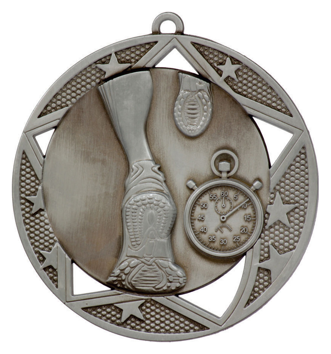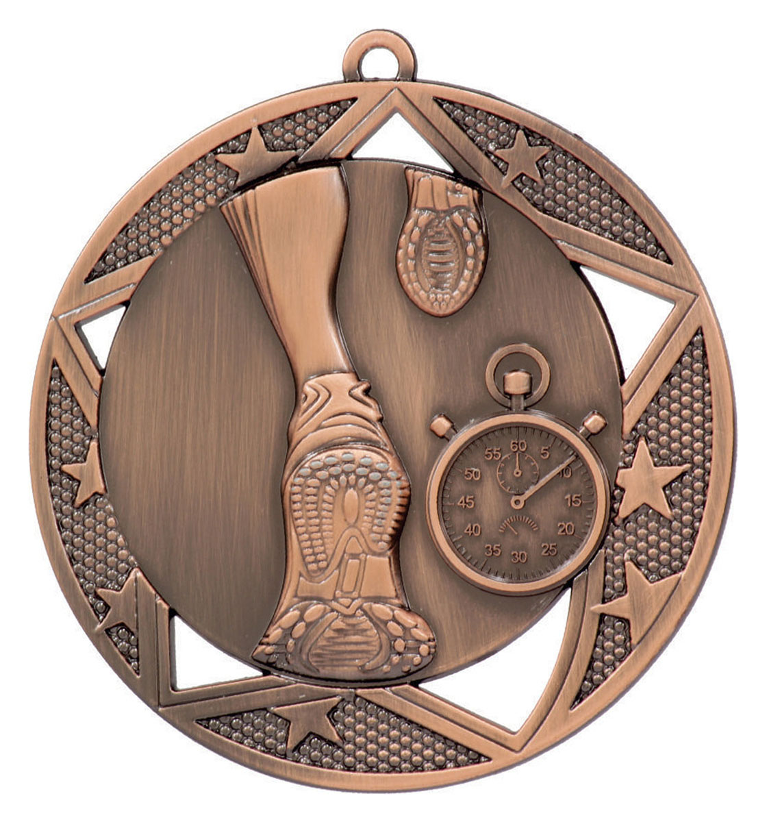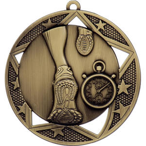Celebrate outstanding performance with these athletics medals, offered in classic gold, silver, and bronze finishes. Each medal is crafted from durable metal, featuring a circular form with detailed embossing of a stopwatch and running shoe; the essence of competitive running. These expertly designed awards are a trusted choice for recognising achievement in track and field events.