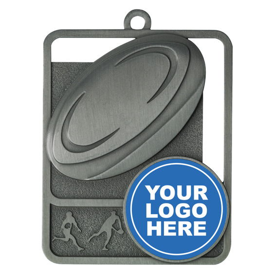 Showcasing a contemporary rectangular shape with rounded edges, this rugby medal is crafted from quality metal and available in both gold and silver finishes. A detailed rugby ball design and silhouettes of players present a strong sense of achievement, while the 25mm centre allows for custom logo placement, making these rugby medals a memorable choice for any event or team celebration.