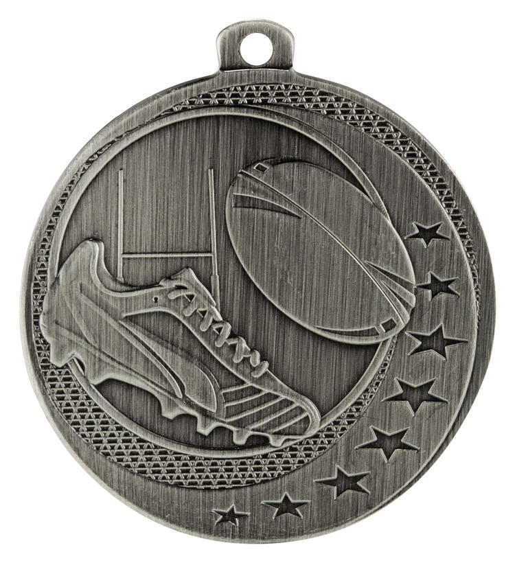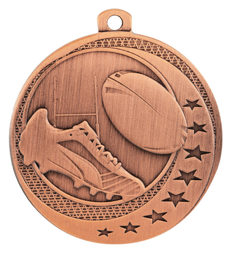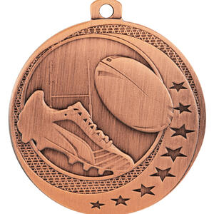 A rugby medal designed for meaningful recognition, this metal award features a striking circular form in your choice of gold, silver, or bronze. Detailed with a rugby ball, boot, and goalposts, it captures the essence of the sport. Durable crafting ensures this medal stands as a professional and memorable celebration of rugby achievement.