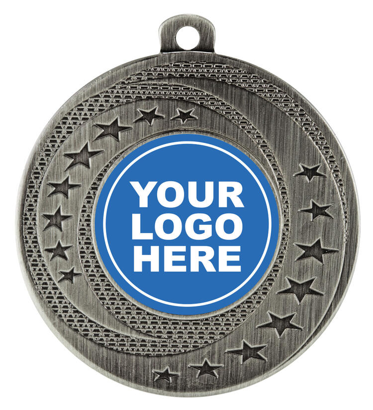 Crafted in durable metal and offered in bronze, silver, and gold, this medal features a refined circular shape highlighted by an elegant star pattern. The 50mm design includes a 25mm centre space for customisation or logo display, making it ideal for recognising outstanding performance across general sports events while maintaining a professional, memorable appearance.
