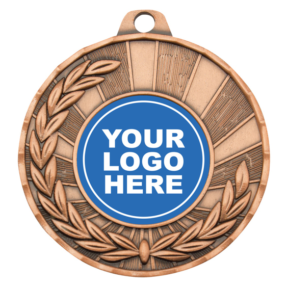 This finely crafted metal medal features a classic circular shape adorned with a laurel wreath design, available in bronze, silver, and gold finishes. Measuring 50mm, it offers a balanced and substantial feel for general sports awards and medals. The central area is designed for easy customisation, allowing you to create a memorable and exclusive recognition piece for your next event.