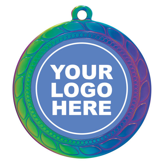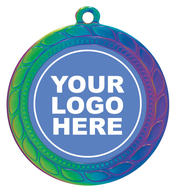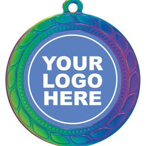 With its iridescent rainbow finish and durable metal construction, this circular insert medal stands out in any presentation. The 70mm size and spacious 50mm centre offer a sleek canvas for custom recognition, allowing you to highlight achievement with a personal touch.