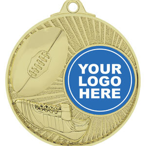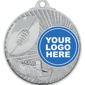 Celebrate achievement in Aussie Rules football with this expertly crafted metal medal, available in distinguished silver or gold finishes. The circular 52mm design features a dynamic football and shoe motif, a textured border, and a secure loop for ribbon attachment plus a centre holder for your club logo.