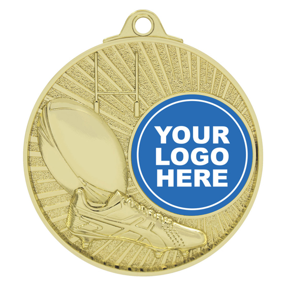 This rugby medal features a bold circular metal design available in gold or silver, crafted to honour sporting achievement with precision and quality. Its detailed motif incorporates a rugby ball, boot, and goalposts, creating a memorable celebration of the game. An ideal choice for recognising dedication and skill in rugby competitions.
