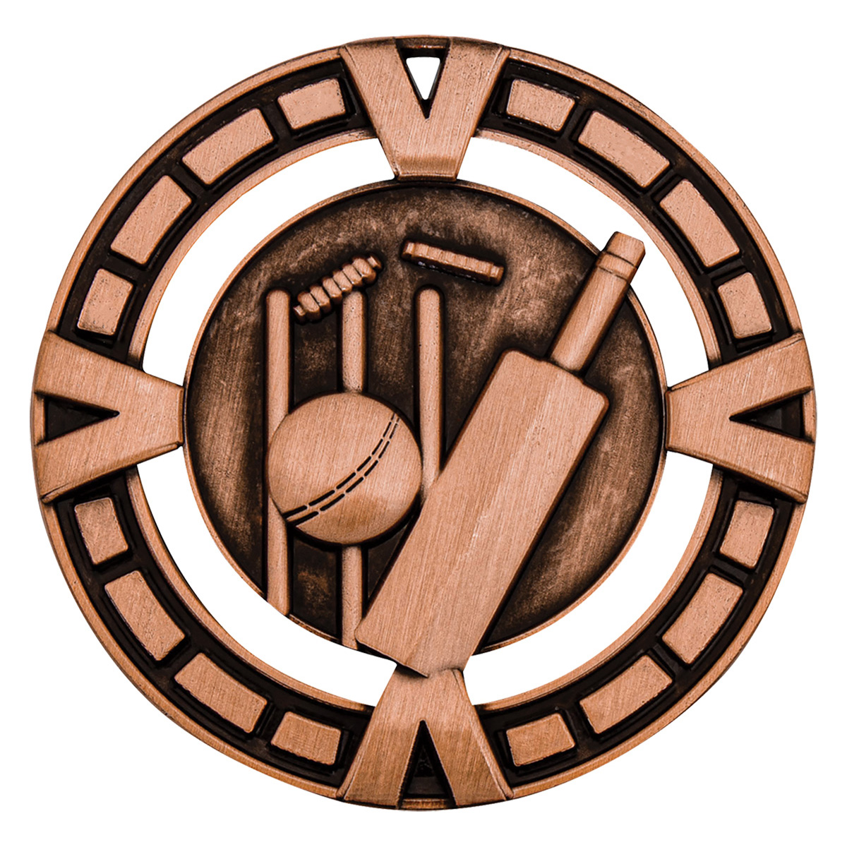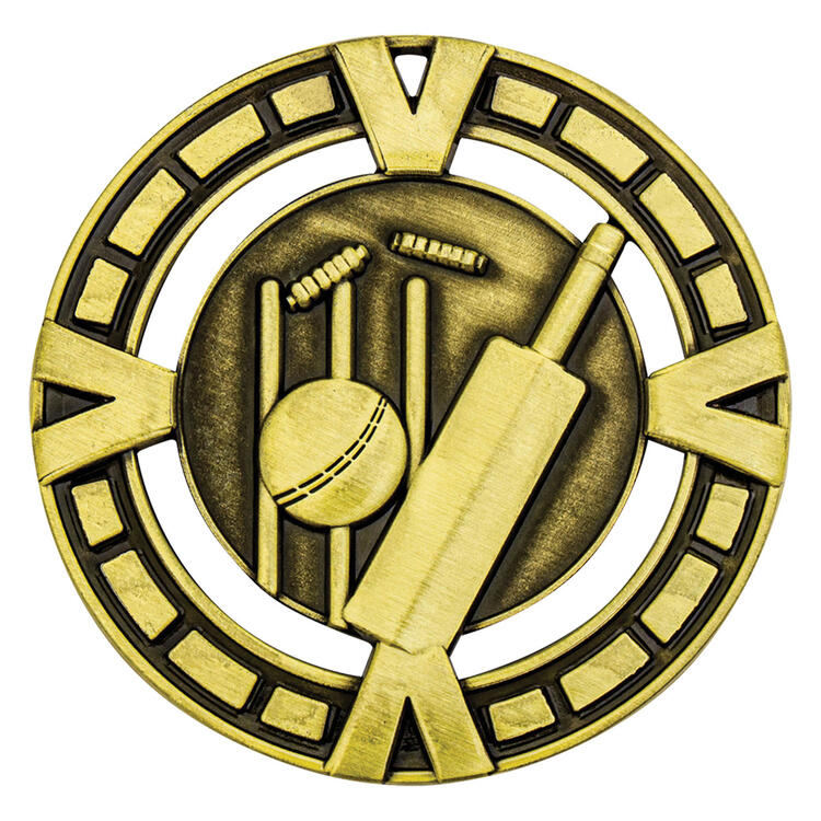 Crafted in durable metal and available in bronze, silver, and gold, this circular award celebrates cricket achievement with unmistakable clarity. The medal's detailed design features a cricket bat, ball, and stumps, making it a standout choice among cricket medals. Its classic finish and sport specific imagery recognise skill and dedication on the field.