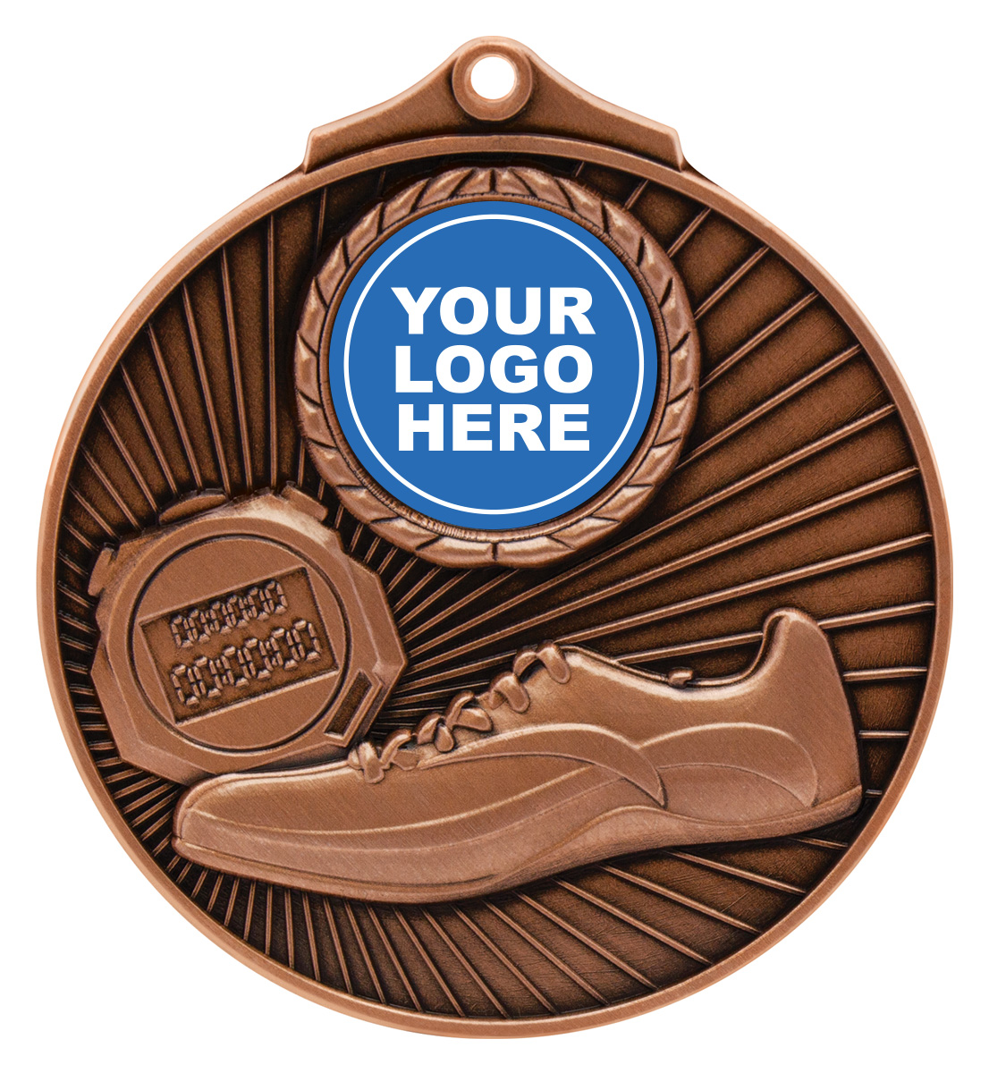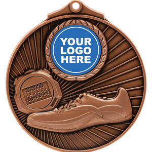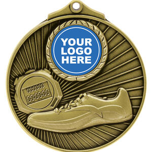 Crafted in gold, silver, and bronze metal finishes, these circular athletics medals feature an elegant stopwatch and running shoe design. The quality construction makes them a fitting recognition for any athletics event. Each medal includes a central area for customisation, allowing for a unique and memorable presentation that celebrates dedication and achievement in sport.
