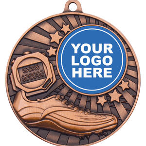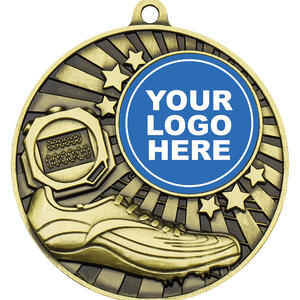 Crafted for meaningful recognition, these athletics medals are available in traditional bronze, silver, and gold finishes. The circular metal design features a stopwatch, running shoe, and stars, capturing the essence of athletic achievement. A dedicated 25mm central area offers the option for customisation, making each award a lasting symbol of performance and celebration in the athletics community.
