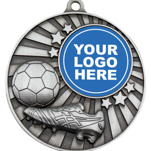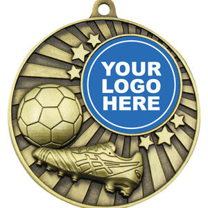 Crafted from quality metal in a refined circular form, this stylish football medal is available in both silver and gold finishes. Showcasing a detailed football and boot design, it features a dedicated 25mm centre area for a club or event emblem. An ideal choice for football awards, it brings a professional and memorable touch to player recognition.