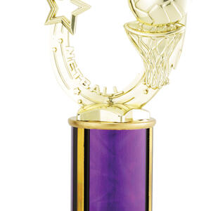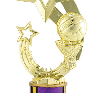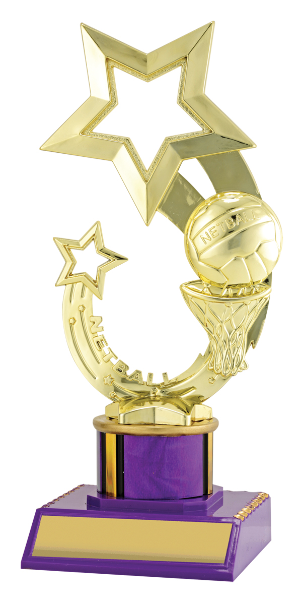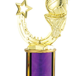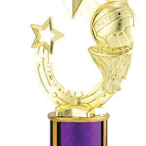 Combining standout colour with a dynamic design, this trophy celebrates achievement in netball with confidence and style. The gold and purple finish, paired with a star motif and netball hoop detail, creates a memorable tribute to sporting excellence.