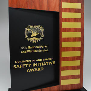 Featuring multiple nameplates, this design is perfect for ongoing recognition such as safety or excellence awards.
