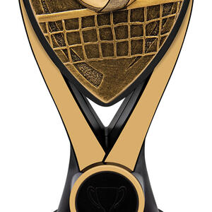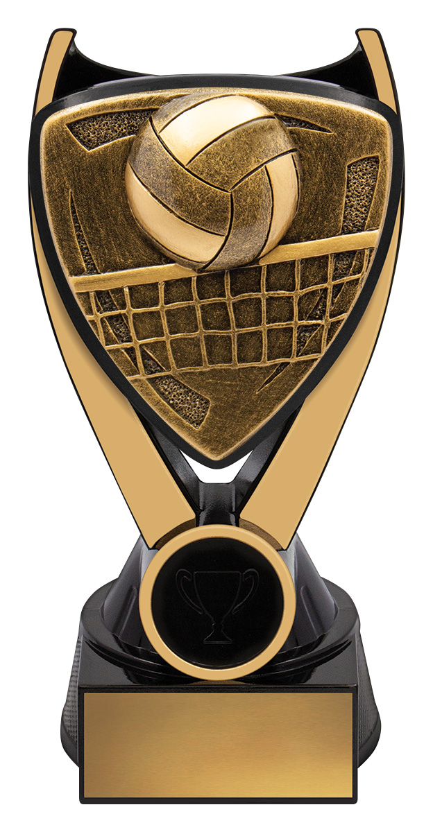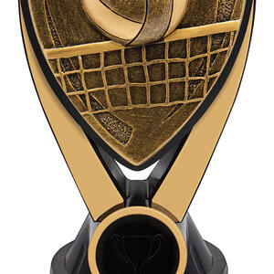Showcasing a dynamic volleyball and net design, this volleyball trophy is crafted from quality resin in sophisticated gold and black. The detailed motif sits securely on a black base, offering a striking presence at any awards presentation. Suitable for both team and individual recognition, it features a gold plaque for custom personalisation options.