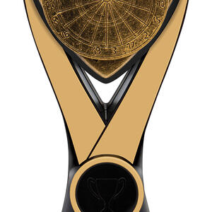 Celebrate achievement in darts with this expertly crafted darts trophy, featuring a dynamic dartboard design and three central darts. The gold and black finish, combined with quality resin construction, creates a professional and lasting impression. A sleek base adds a tailored touch for memorable recognition.