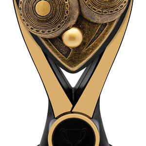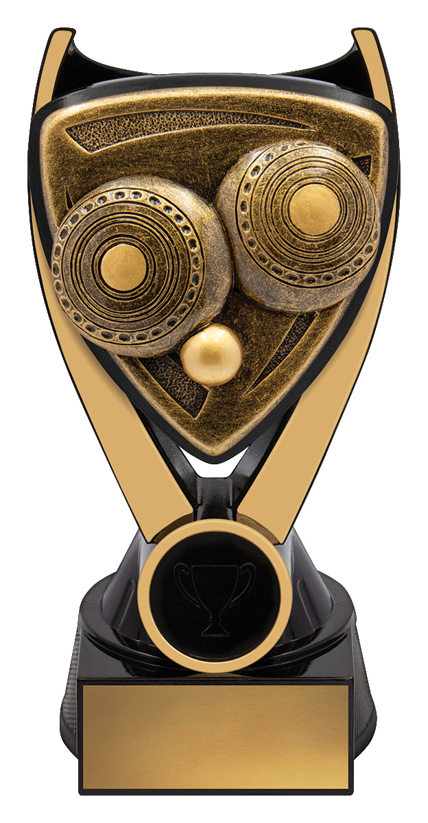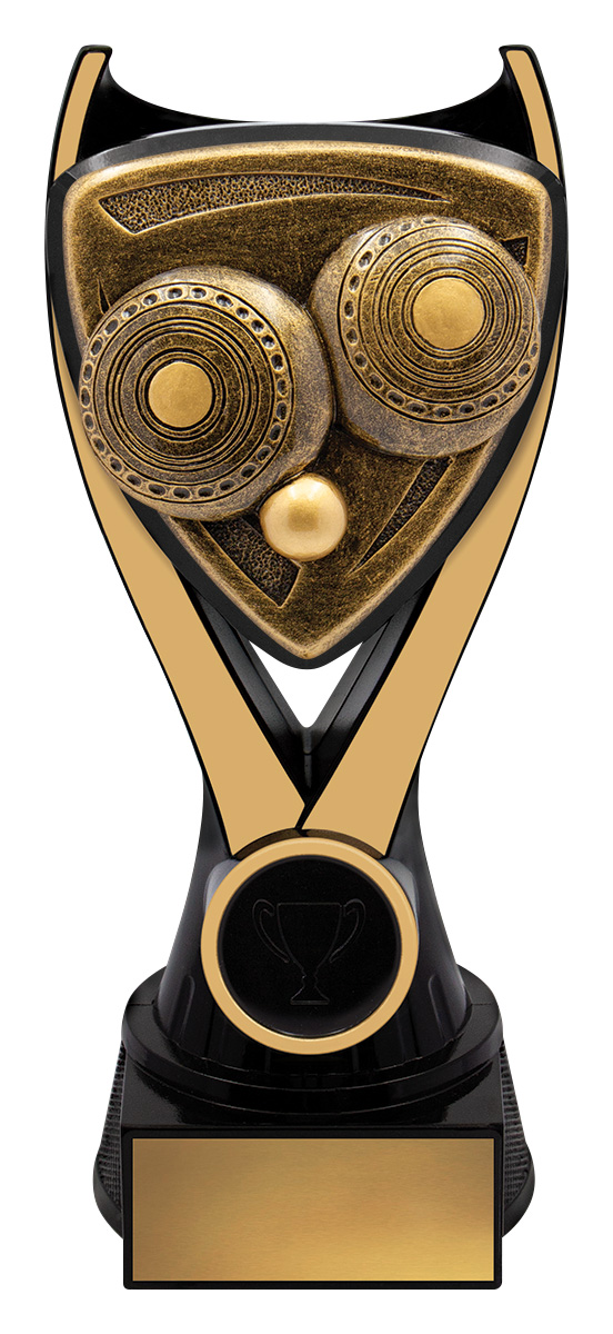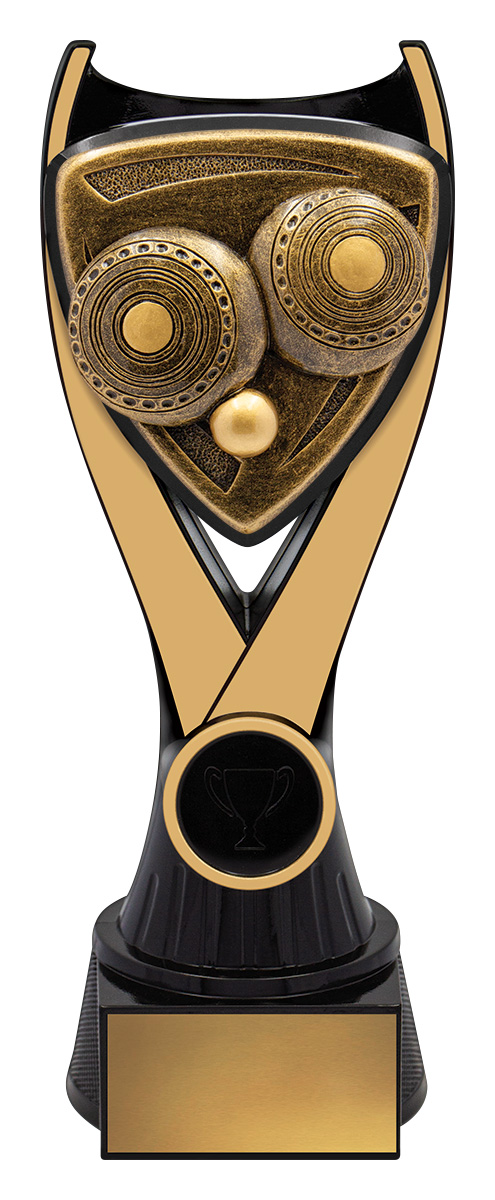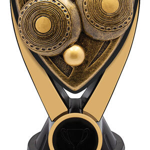A contemporary lawn bowls trophy designed to honour achievement with distinction. Featuring a gold and black palette and a unique triangular emblem, this award is carefully crafted from resin for a balanced, durable finish. The stylised owl design at its centre symbolises wisdom and accomplishment, making it a memorable choice for any recognition ceremony.