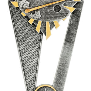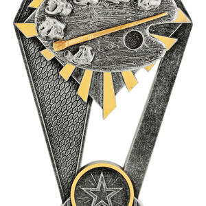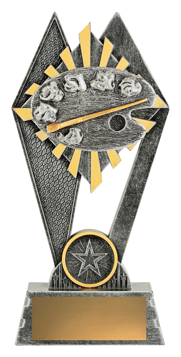 Celebrate creative achievement with this art award trophy, thoughtfully crafted for art and design recognition. Featuring an elegant combination of silver and gold, this trophy showcases a distinctive paint palette and brush motif set on a triangular base, finished with a star emblem. Durable resin construction make it a trusted choice for memorable art focused ceremonies.