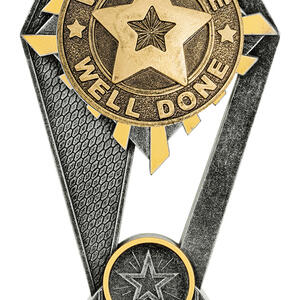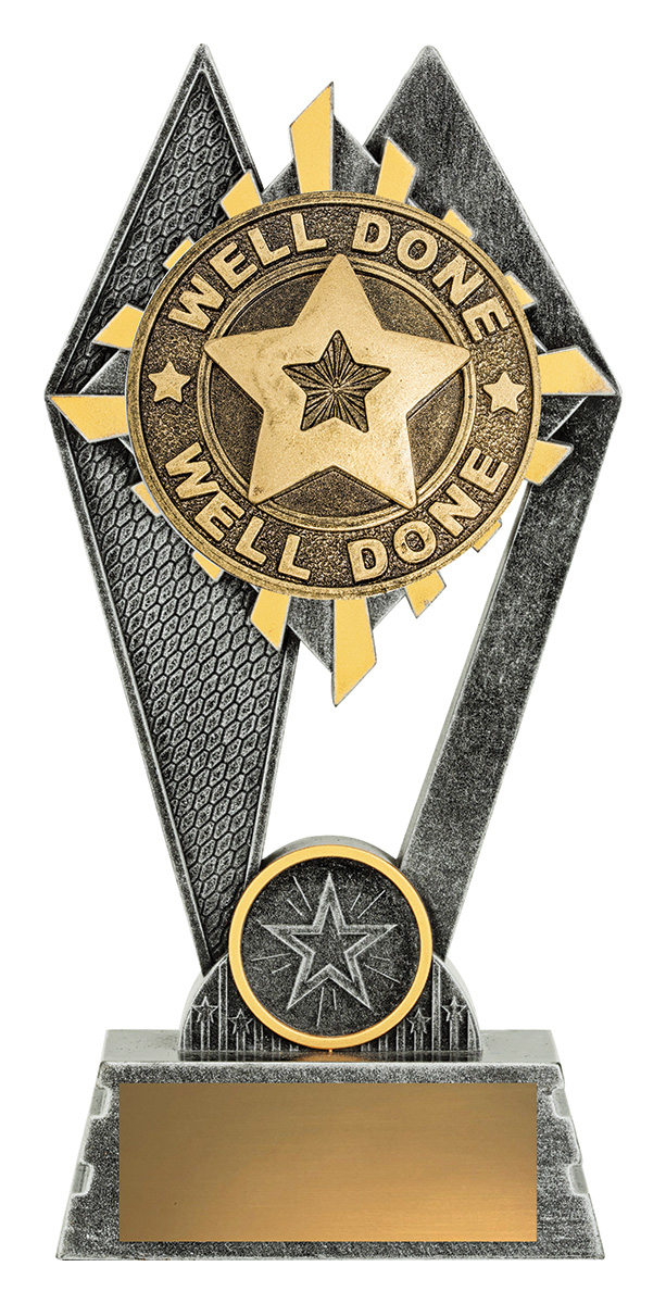 Celebrate outstanding achievement with this elegant star trophy, crafted in gleaming gold and silver. The trophy features a striking star motif, a distinctive 'Well Done' text, and a refined combination of metal and plastic for durability and style. A standout choice for recognising effort and success in any educational or achievement setting.