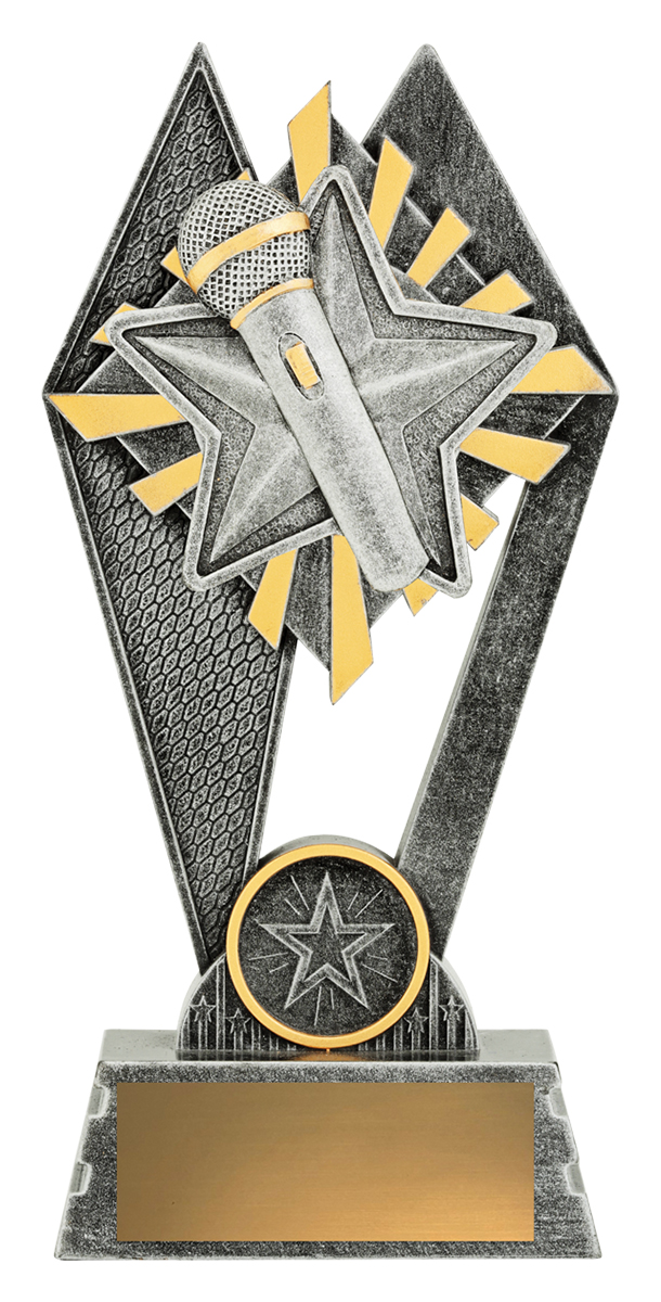 Celebrate outstanding communication skills with this striking public speaking trophy. Crafted in radiant silver and gold tones, it features an elegant star and microphone design atop a sturdy base. The resin material ensures durability, making it a memorable choice for recognising achievement in speech, singing, or music competitions.