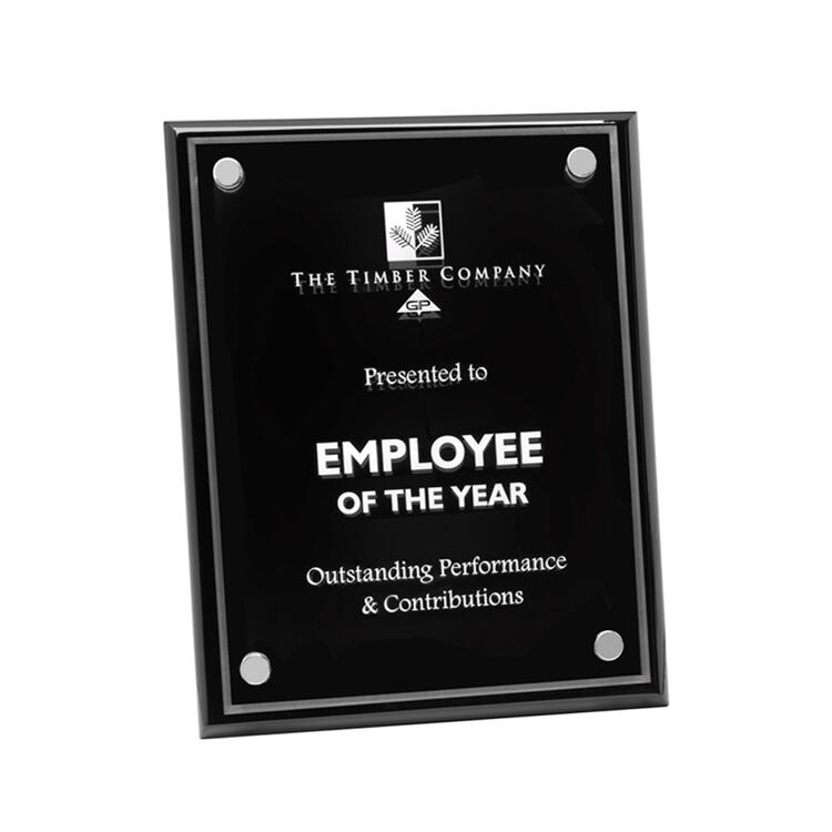 This premium black piano-finish plaque with a floating acrylic front is crafted for memorable recognition and professional presentation. A premium high end recognition plaque.