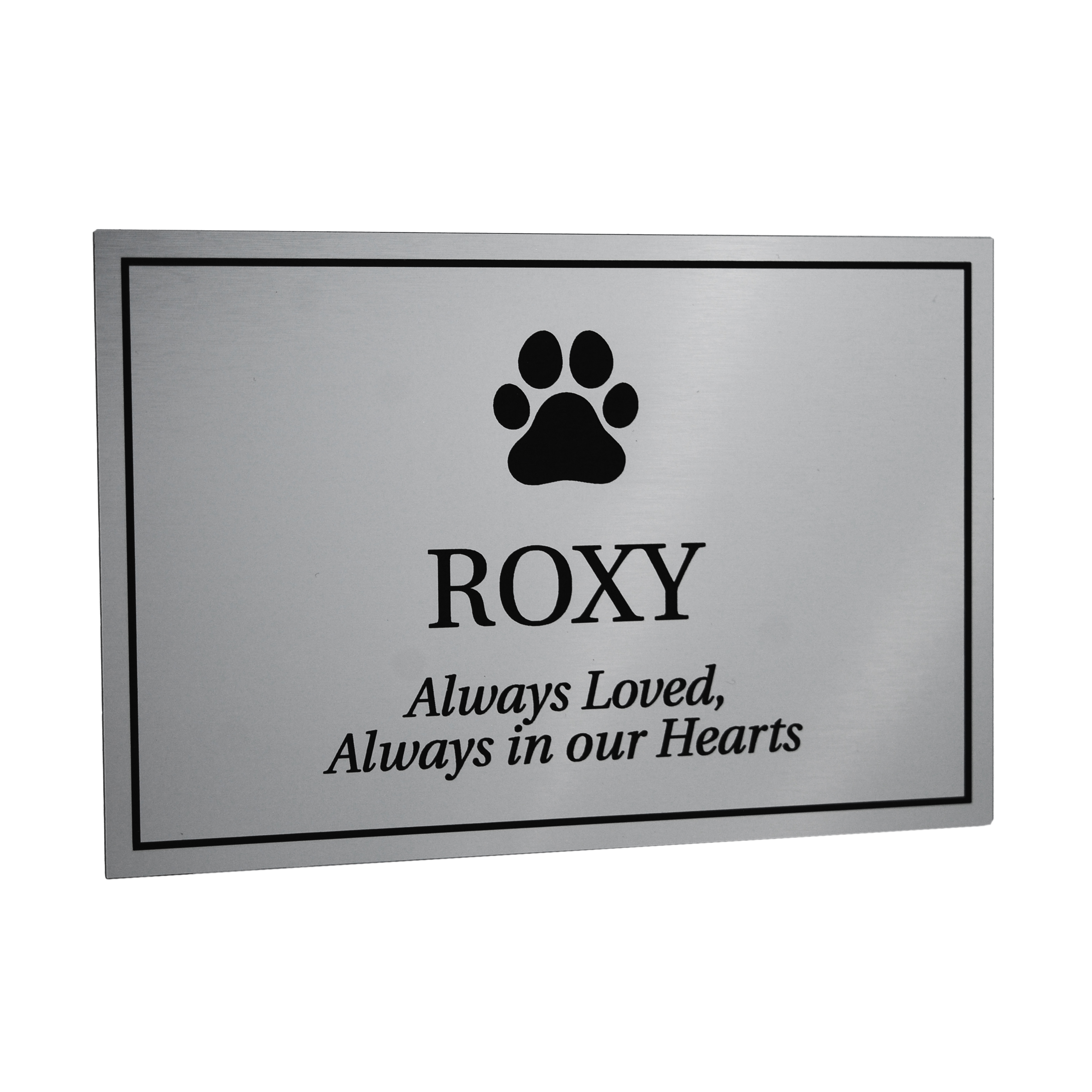 Our Metalgraph Pet Memorial Plaques offer a dignified and lasting way to remember a beloved pet. Crafted from durable metal-look plastic, these plaques provide the elegant appearance of brushed silver metal with the practicality of lightweight material. Each plaque is precision engraved to capture names, dates, and heartfelt messages with clarity and detail.