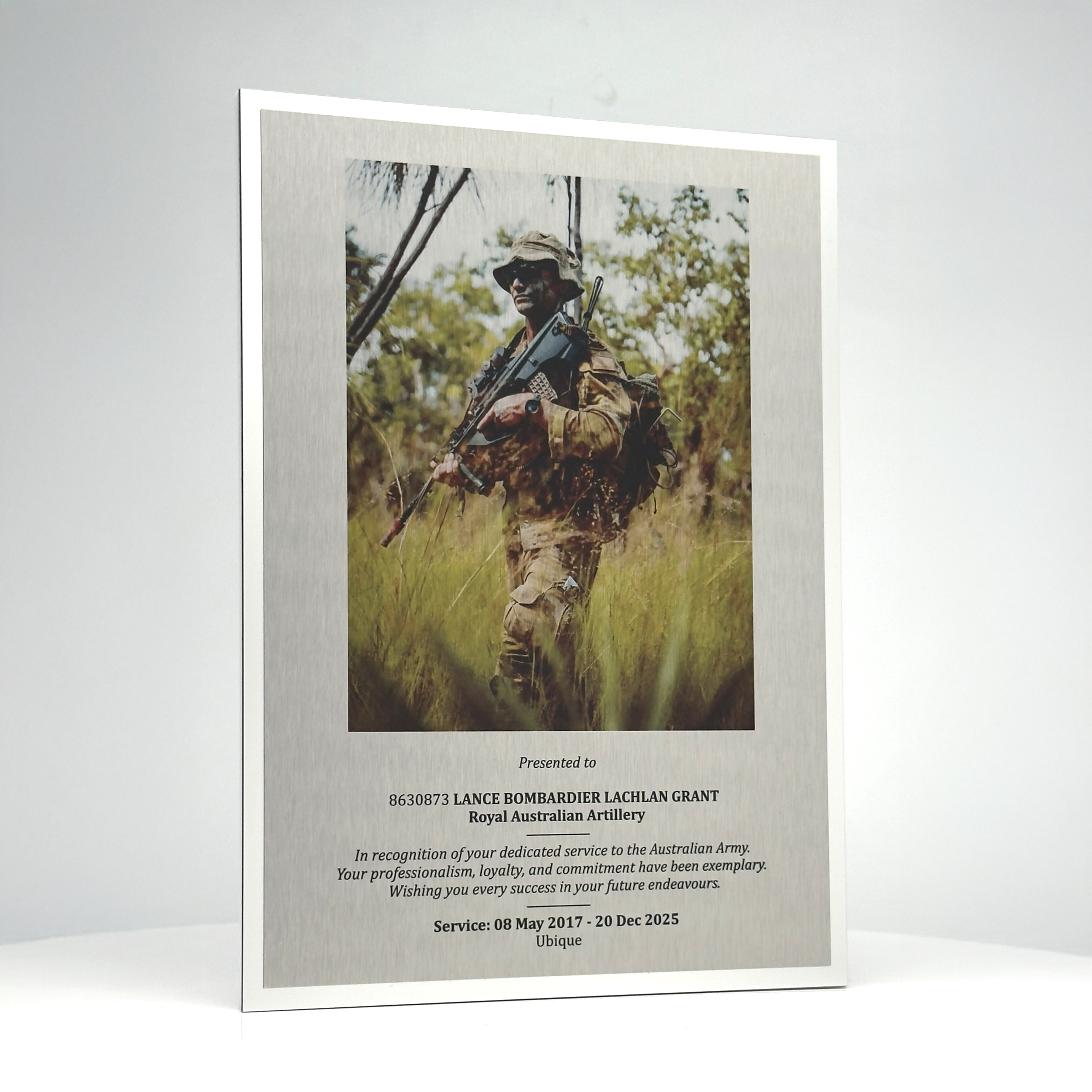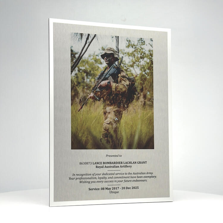 Combining precision craftsmanship with contemporary design, this metal photo print block mount presents images with striking clarity and depth. The robust construction ensures durability while offering a sophisticated, freestanding display solution. Ideal for commemorating achievements or capturing memorable moments, its sleek finish and optional border make it a trusted choice for quality recognition displays.