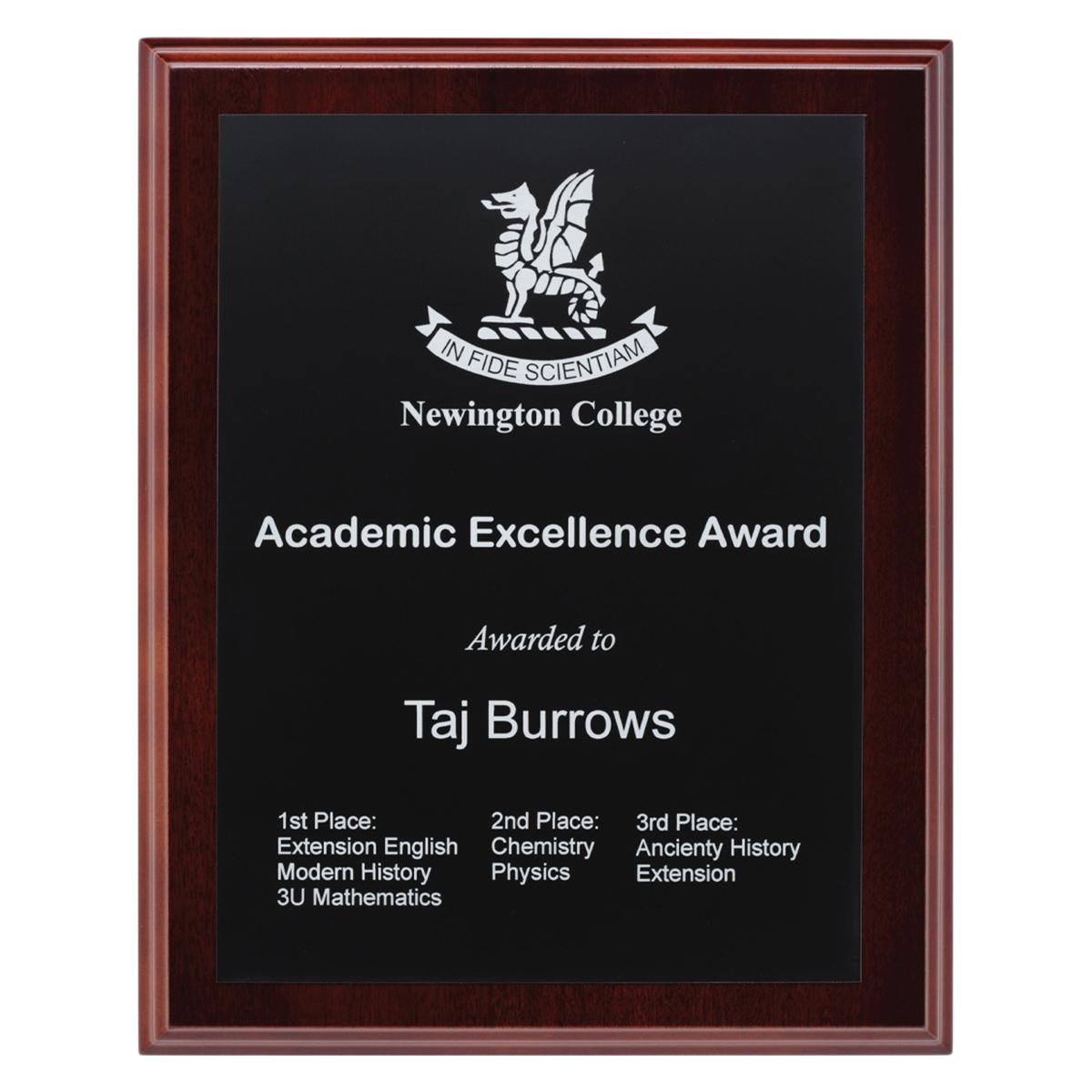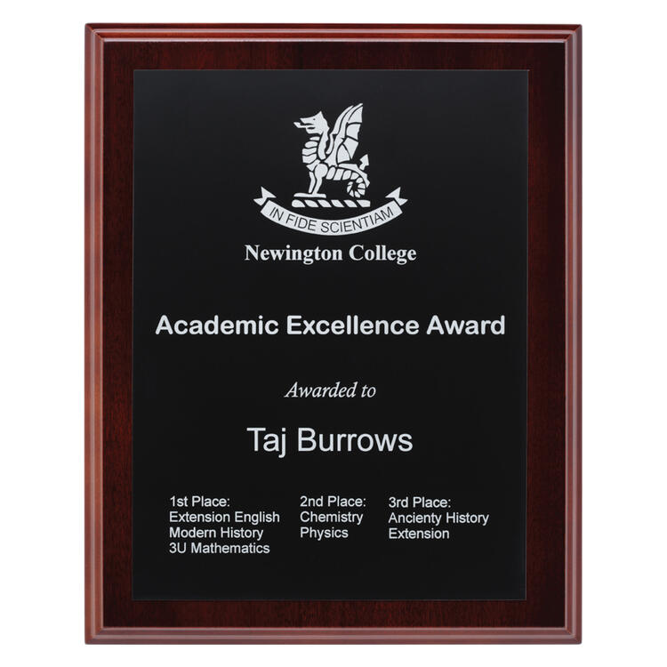 Quality Silver Metal with Trim on Gloss Rosewood Sublimation Plaque
