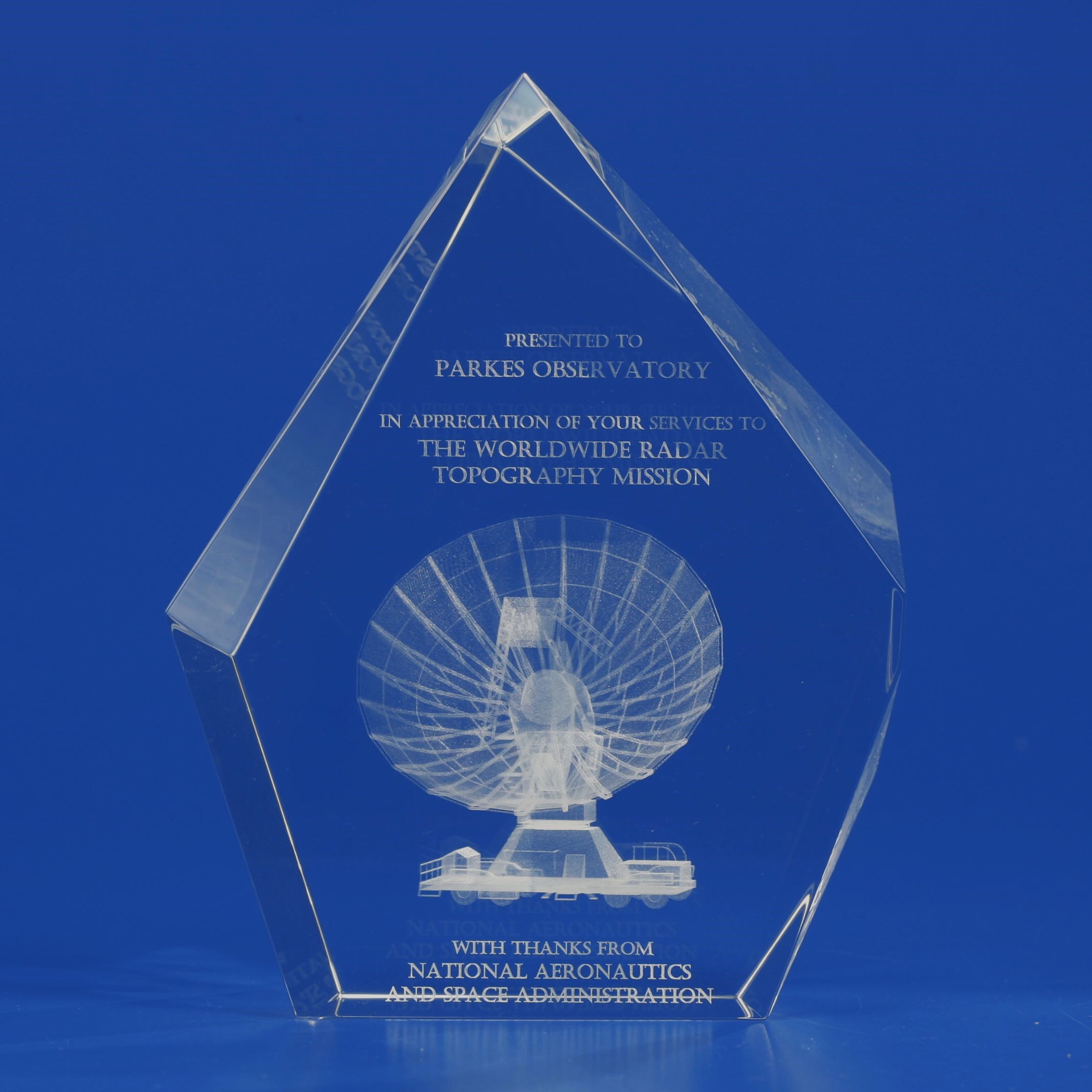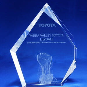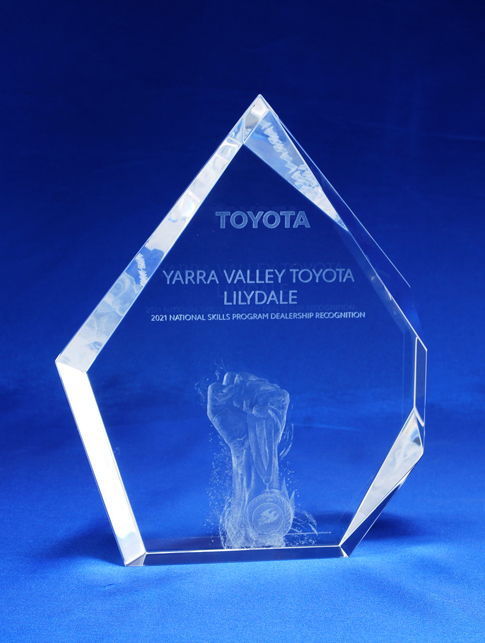 This technique works best on optical crystal due to its clarity. It supports both 2D and 3D engravings—2D for flat imagery and 3D for depth and realism. Sub-surface engraving is ideal for creating premium awards, personalised gifts, and impressive corporate pieces.