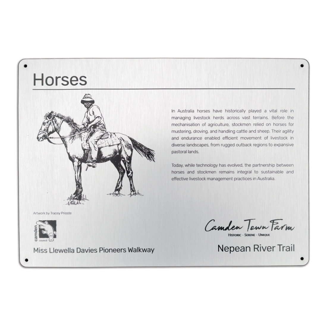 For the Camden Council interpretive signage project, Premier Awards was engaged to produce a collection of photo-anodised aluminium panels featuring historical imagery and detailed text. These interpretive signs were designed to share local stories and heritage, requiring exceptional image clarity and durability. The scope involved accurately reproducing archival photographs and written content in a way that would preserve cultural history for decades to come, while meeting council specifications for community display.