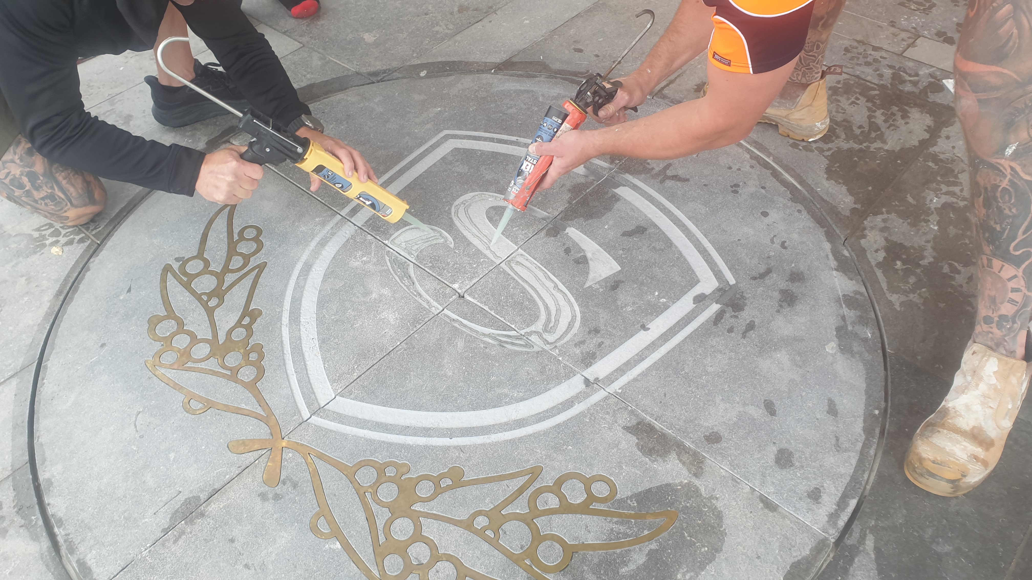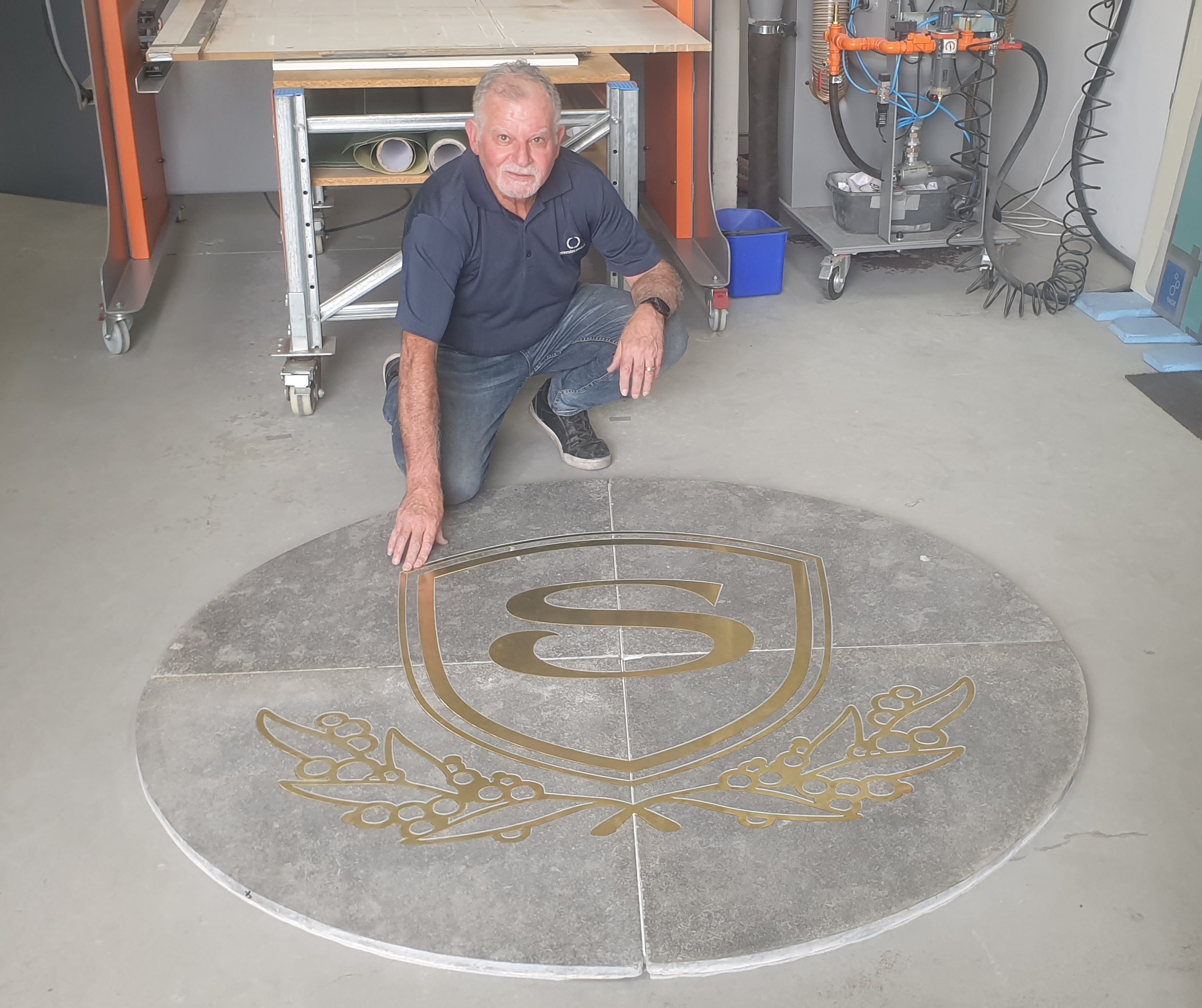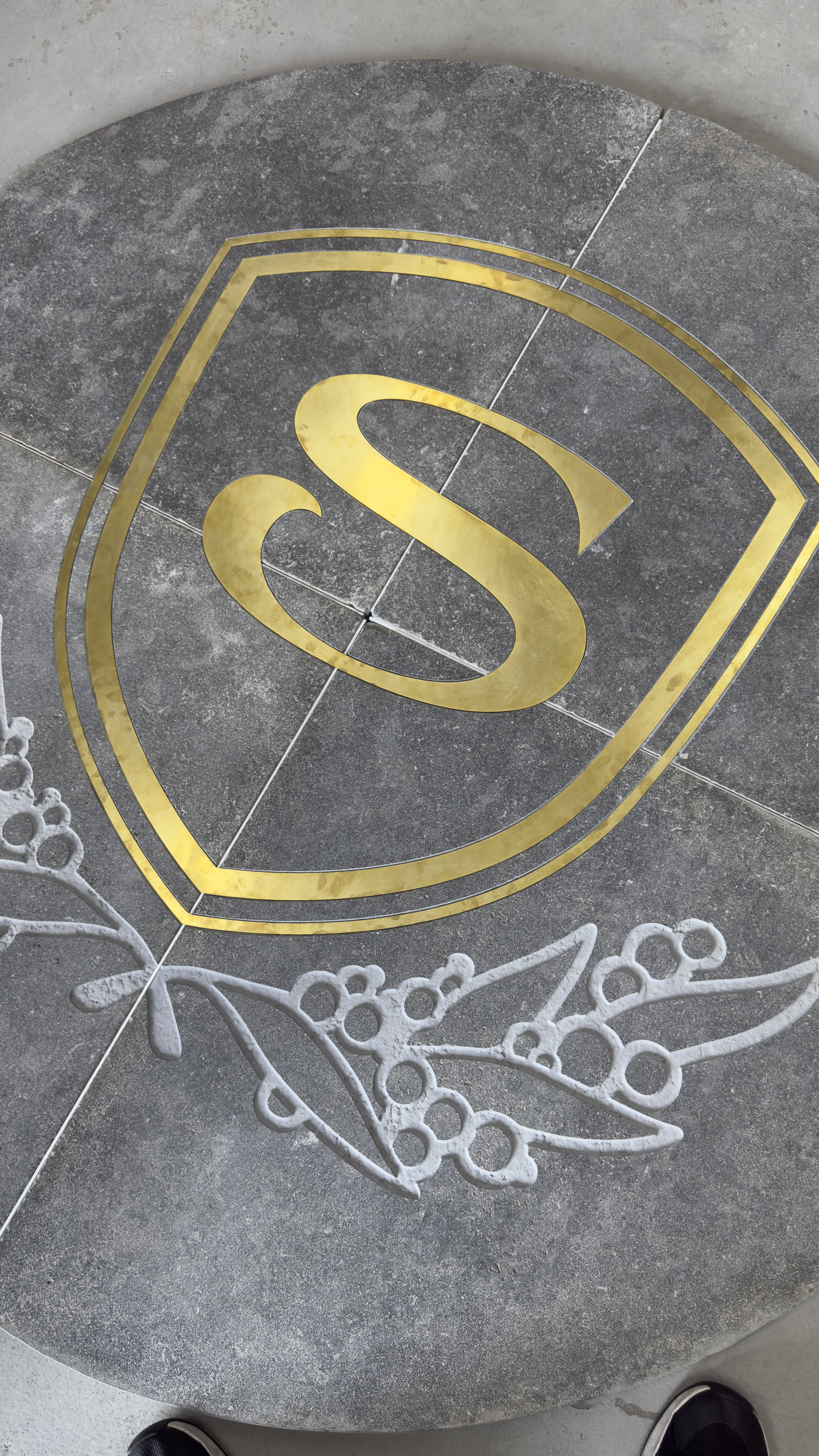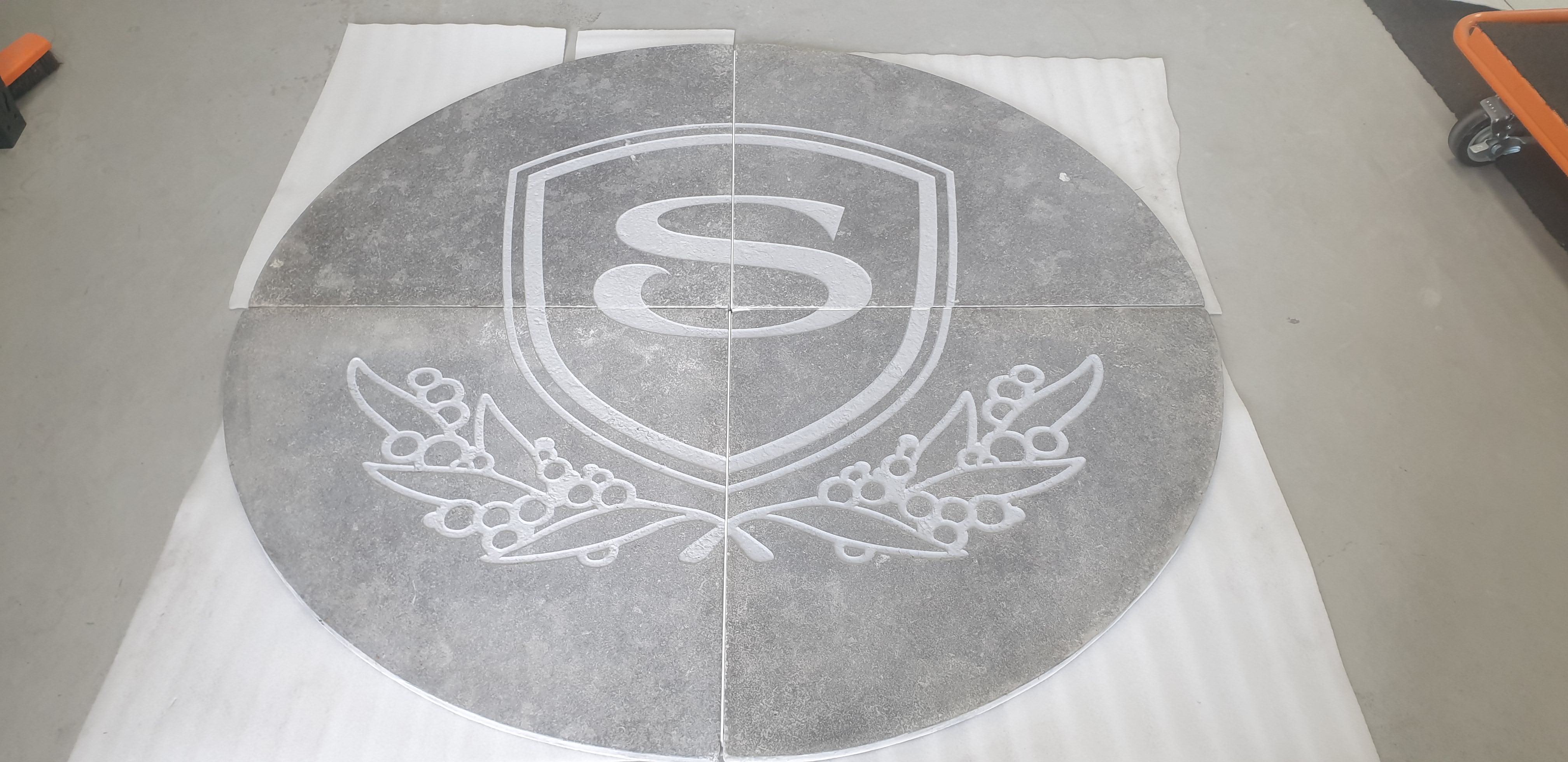 For this project, four individually engraved granite segments were carefully aligned to form a 2-metre diameter medallion, demonstrating our capacity to handle large-scale, high-precision assemblies. Each stone piece was meticulously matched and levelled to ensure a flawless surface transition, allowing the brass inlay to sit perfectly flush within the engraved bed. The result is a statement piece that blends strength, symmetry, and refined craftsmanship — a benchmark for our technical and creative capabilities.