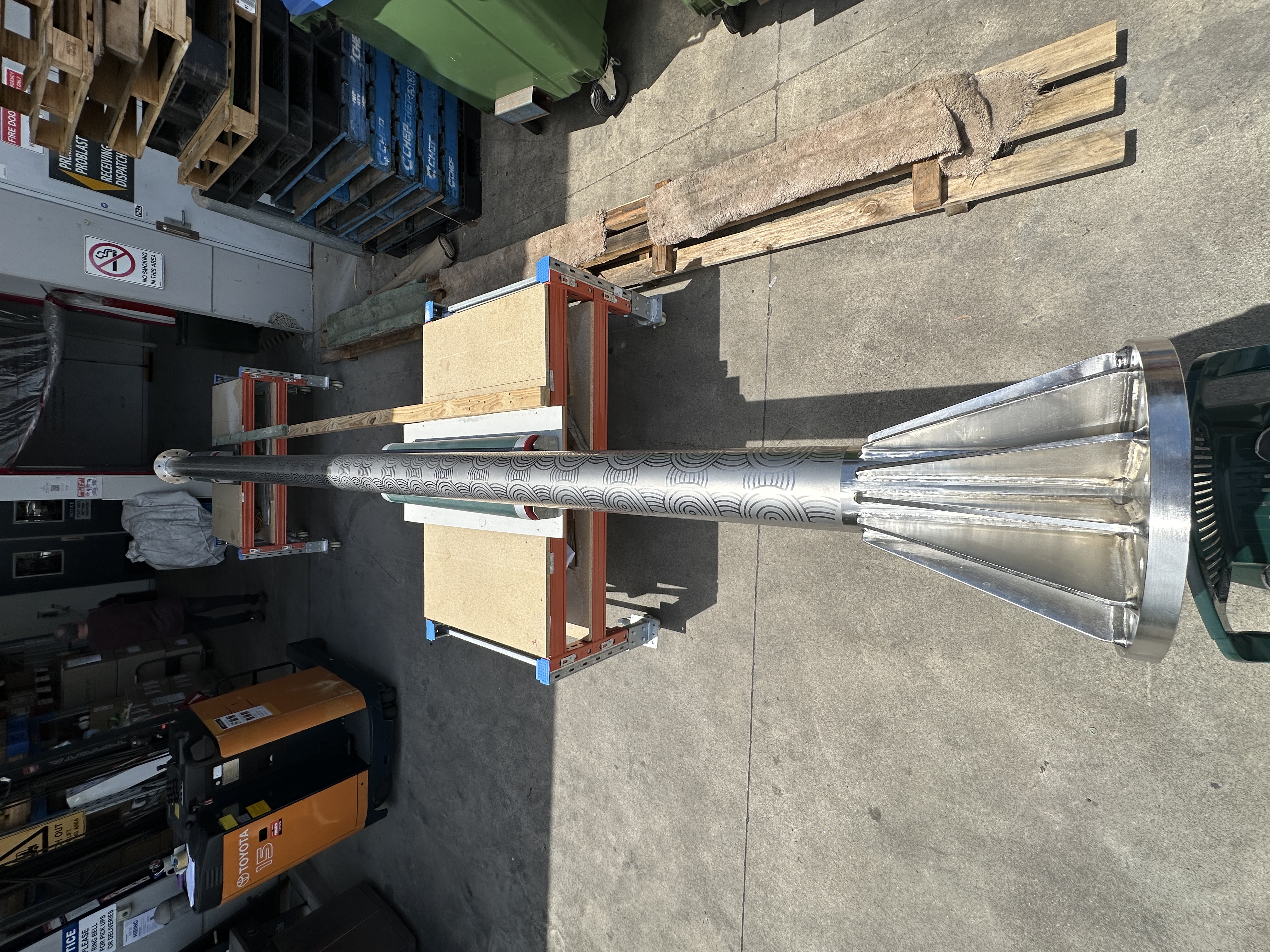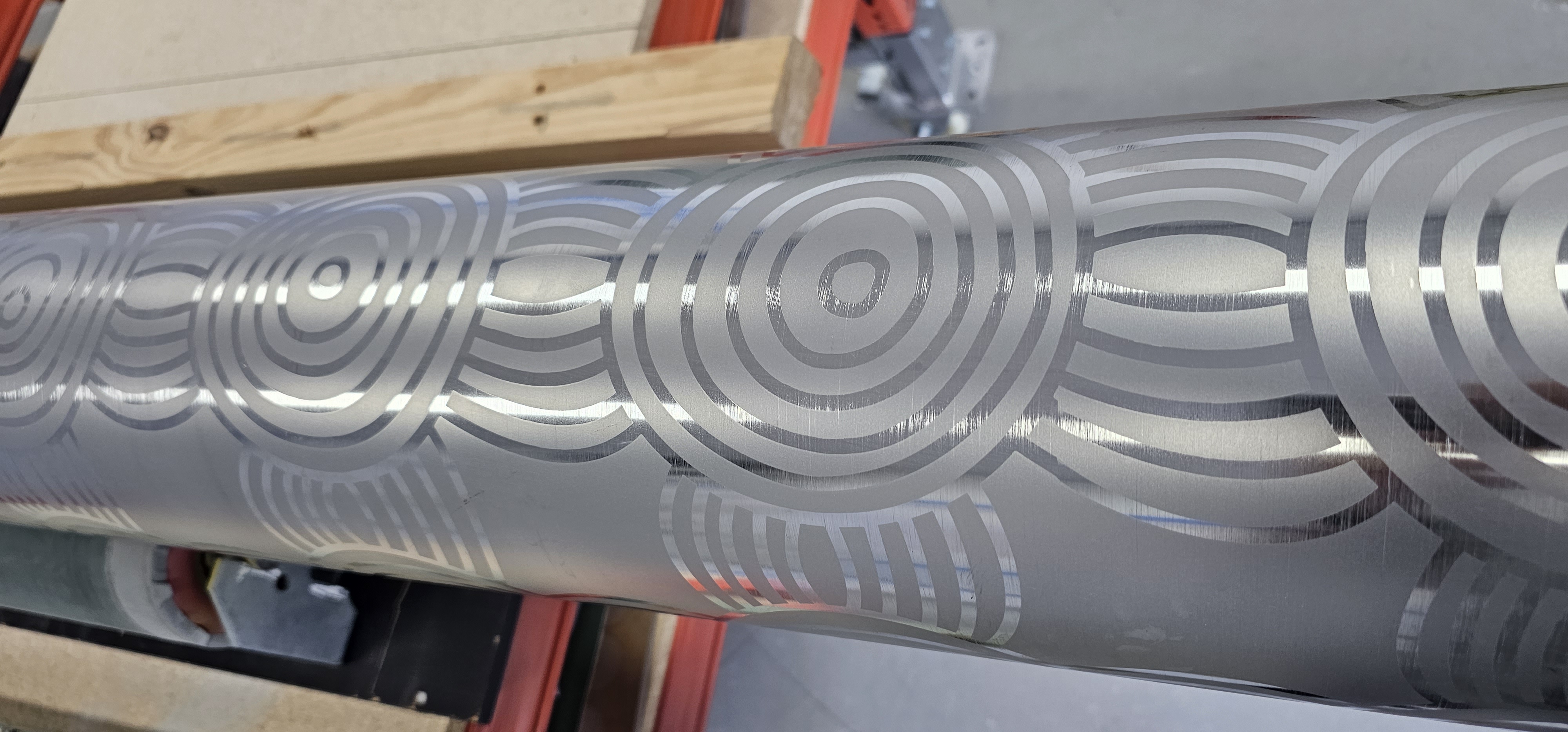 Etch the background of a 2mtr square Stainless steel containment box and 9mtrs of 300mm diameter vent shaft with indigenous artwork.