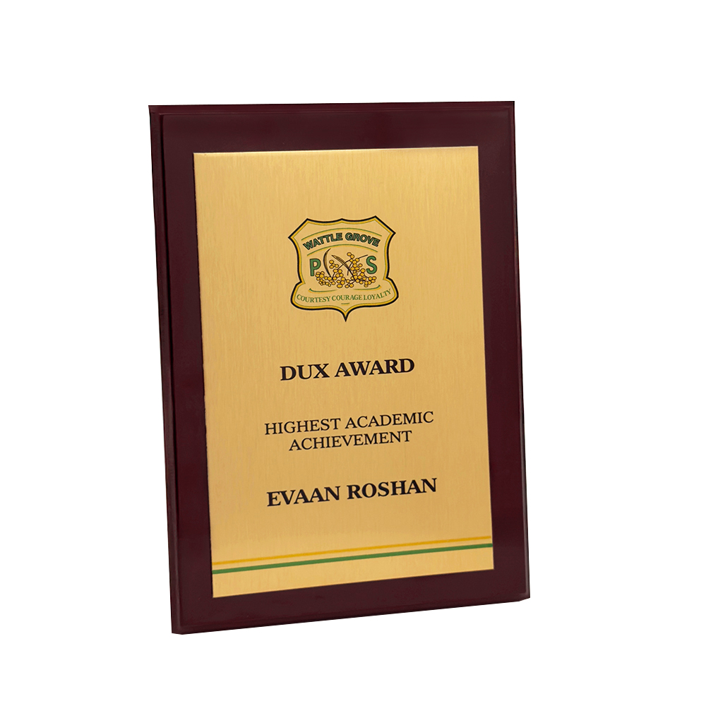 Clear Acrylic Printed Plaque with Brushed Metal Plate and Shiny Border