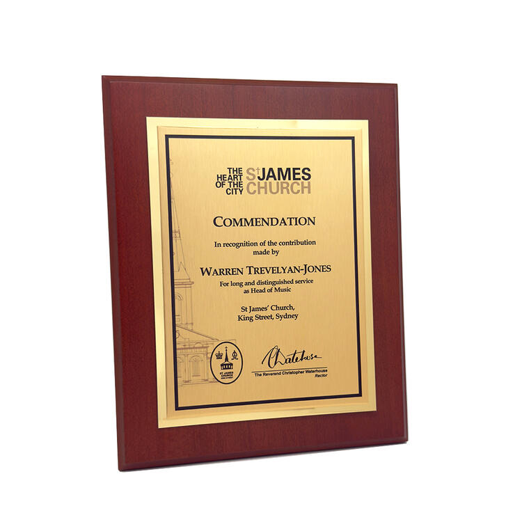Quality Gold Metal with Trim on Satin Walnut Sublimation Plaque