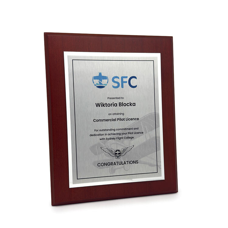 Quality Silver Metal with Trim on Satin Walnut Sublimation Plaque