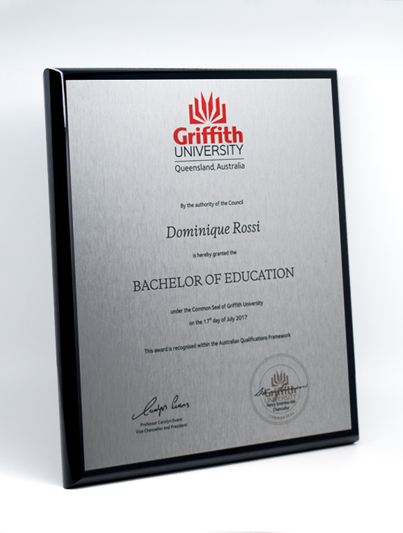 Our Graduation Plaques are designed to showcase your original testamur. See the FAQs below for more details on files, colour matching, and what to expect from the reproduction process.
