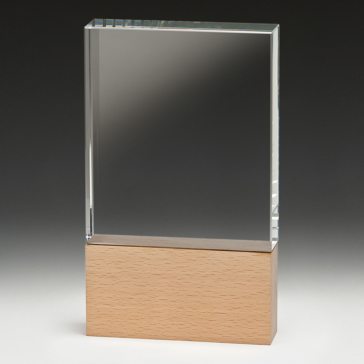Glass trophies typically have a very slight green tinge, which can subtly affect the appearance of colour printing. In contrast, crystal trophies are completely clear.