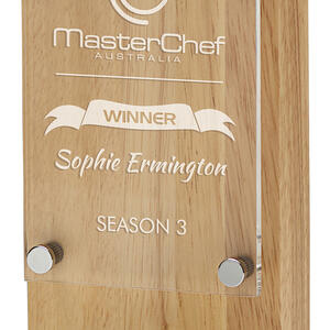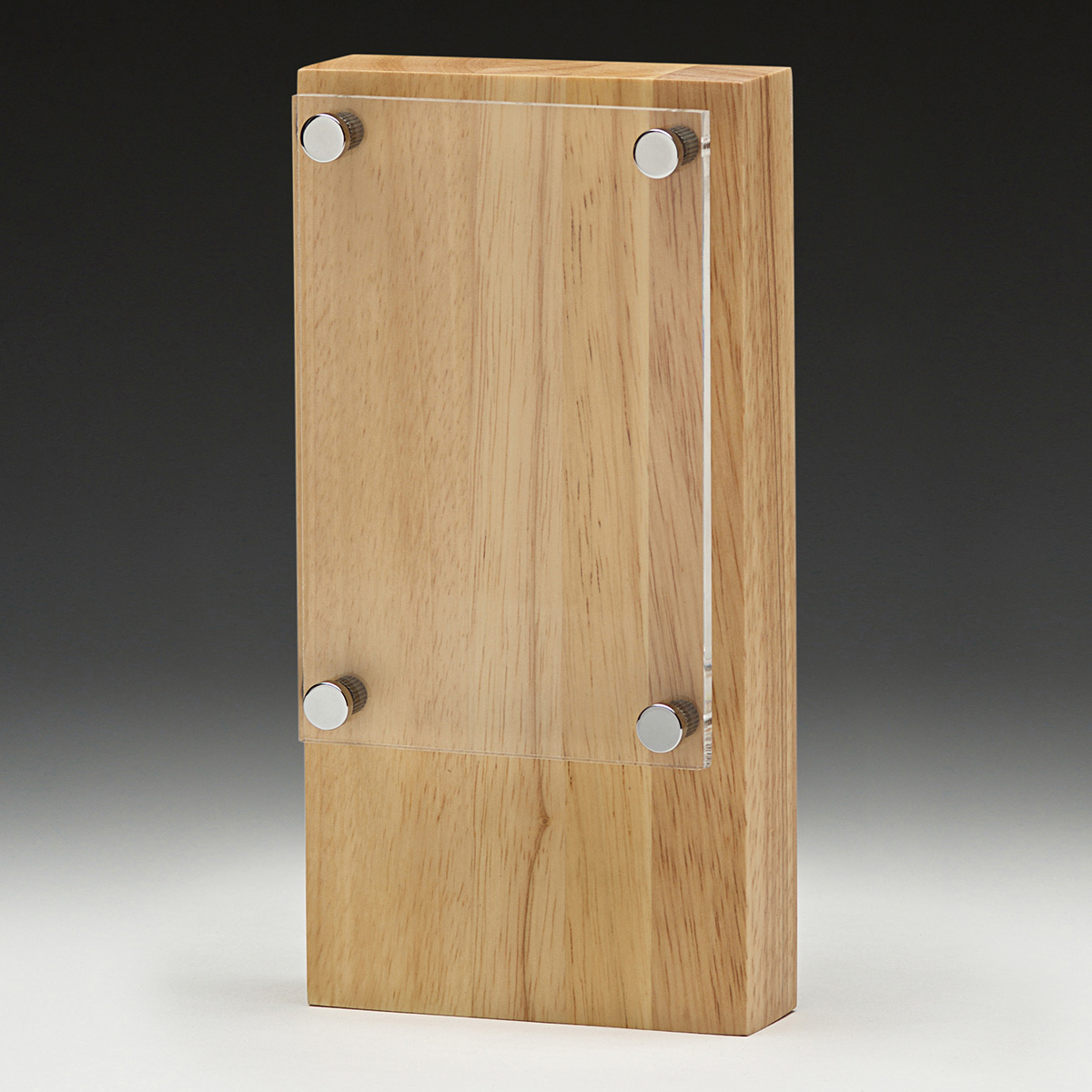 Combining natural wood, clear acrylic, and sleek metal fasteners, this wood award delivers refined recognition with a sustainable touch. Its rectangular profile and elegant contrast between materials create a contemporary look ideal for corporate, community, or academic achievements. Designed for customisation, this award offers a lasting and professional way to honour dedication and success.
