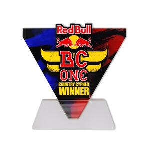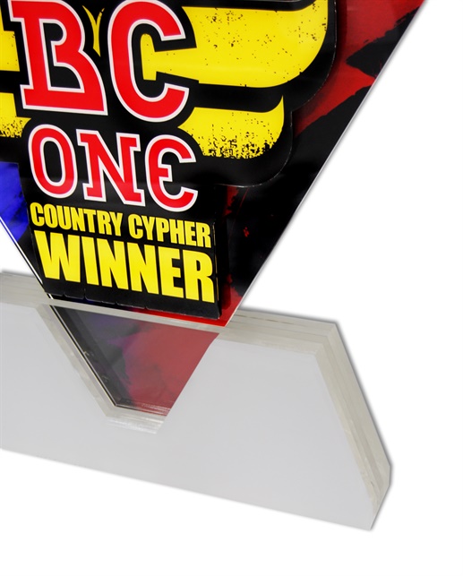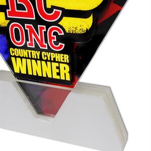 Triangular acrylic award with bold full colour print, designed for impactful brand recognition. The freestanding design and vibrant digital print make it ideal for competitions, sponsorship events, or creative industry awards.