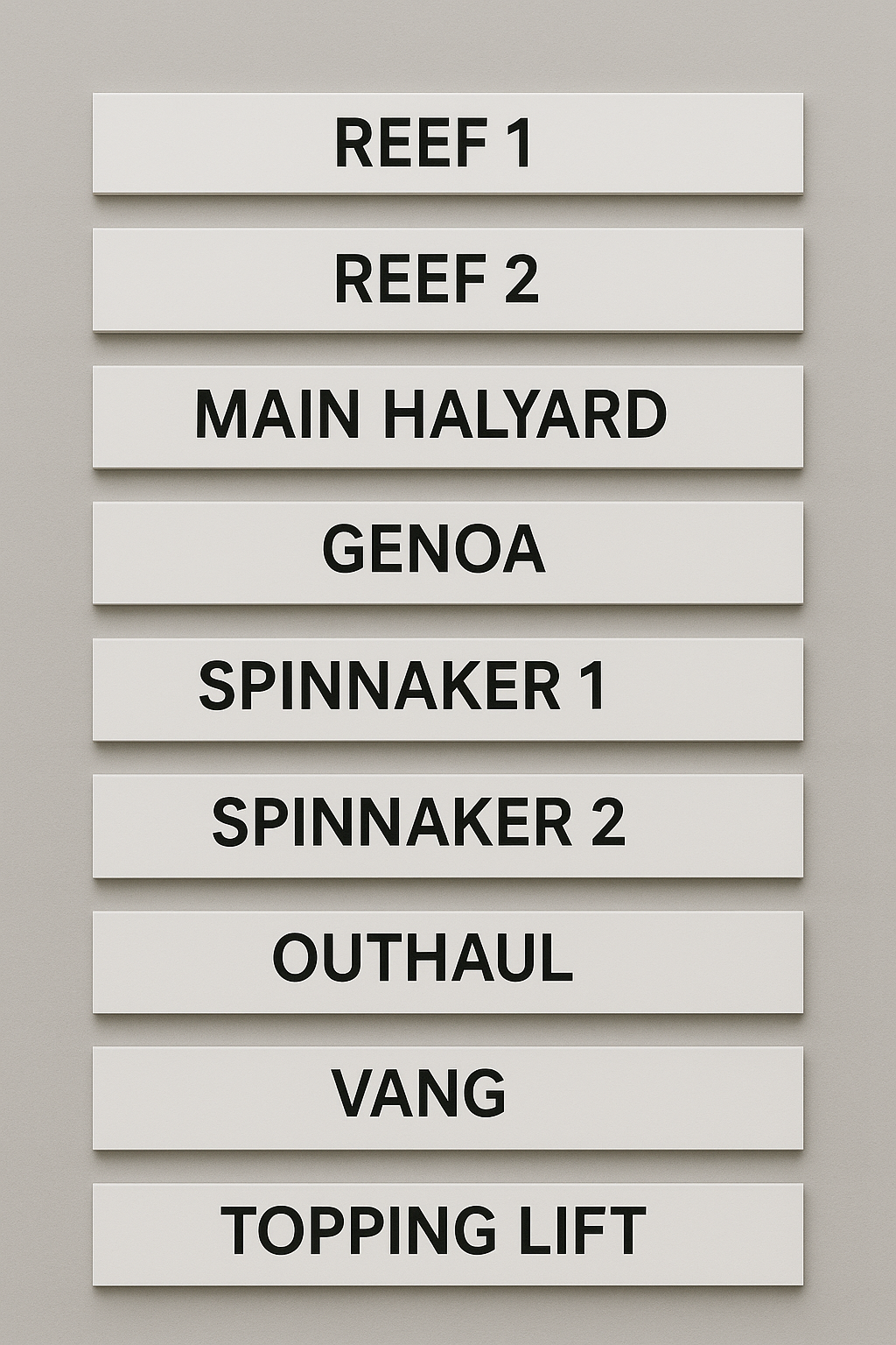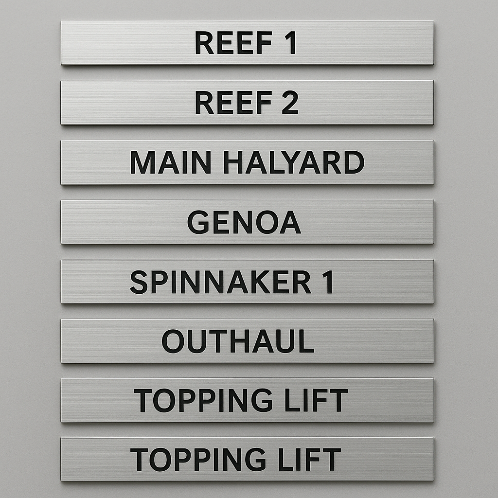Our custom sailboat rope clutch labels are explicitly designed for sailing boats, providing a clear and durable way to identify each clutch. Made to order, these labels are tailored to fit your existing rope clutch recesses, ensuring a neat and professional finish.