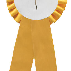 This classic yellow rosette is a bright and cheerful award option, perfect for competitions and special recognition. Designed with a rear hook for easy attachment, it features a 50mm centre that can be customised with your own logo or design. A traditional choice for schools, clubs, and community events.