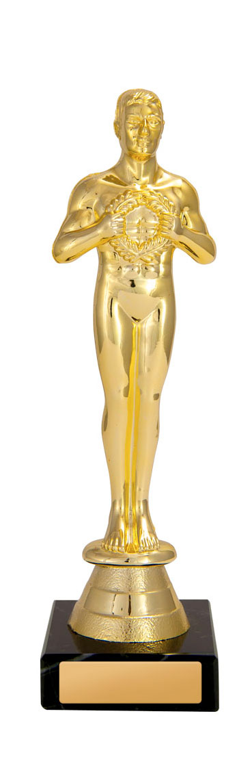 This education trophy features a striking gold human figure holding a victory wreath, symbolising accomplishment and dedication. Crafted from plastic, it stands tall on a sleek black base with a gold plaque. The classic design and custom engraving options make it a memorable choice for recognising educational achievement.