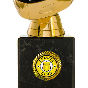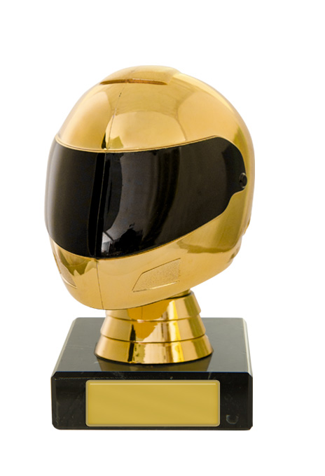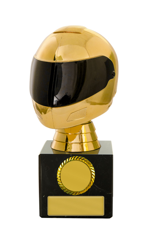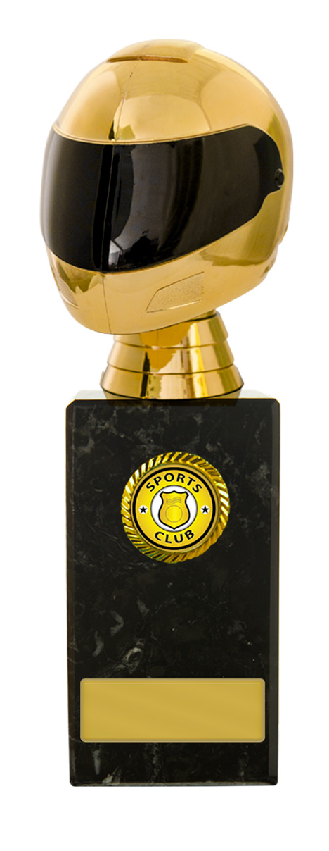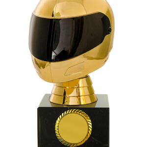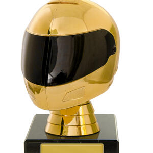 This helmet trophy captures the spirit of motorsport with its dynamic golden helmet design on a sleek black base. It offers both visual impact and lasting quality, featuring a bold 3D helmet. This motorsport trophy is a trusted choice for celebrating racing achievement.
