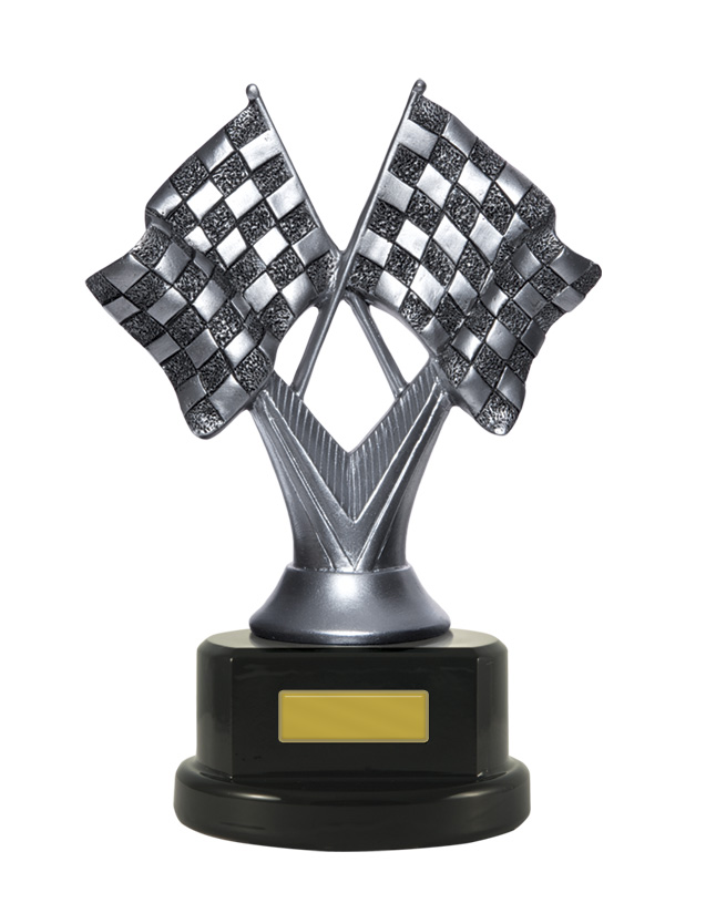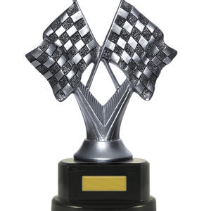 A refined choice for recognising motorsport achievement, this trophy features a pair of crossed chequered flags set atop a sturdy base in silver, black, and gold tones. Crafted with quality materials, it offers a dedicated plaque area for personalisation, making it ideal for racing and motorsport trophies alike.