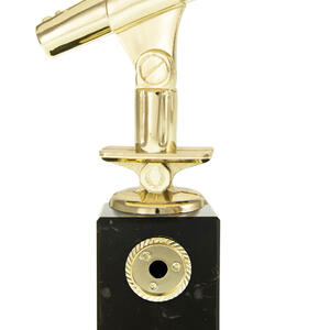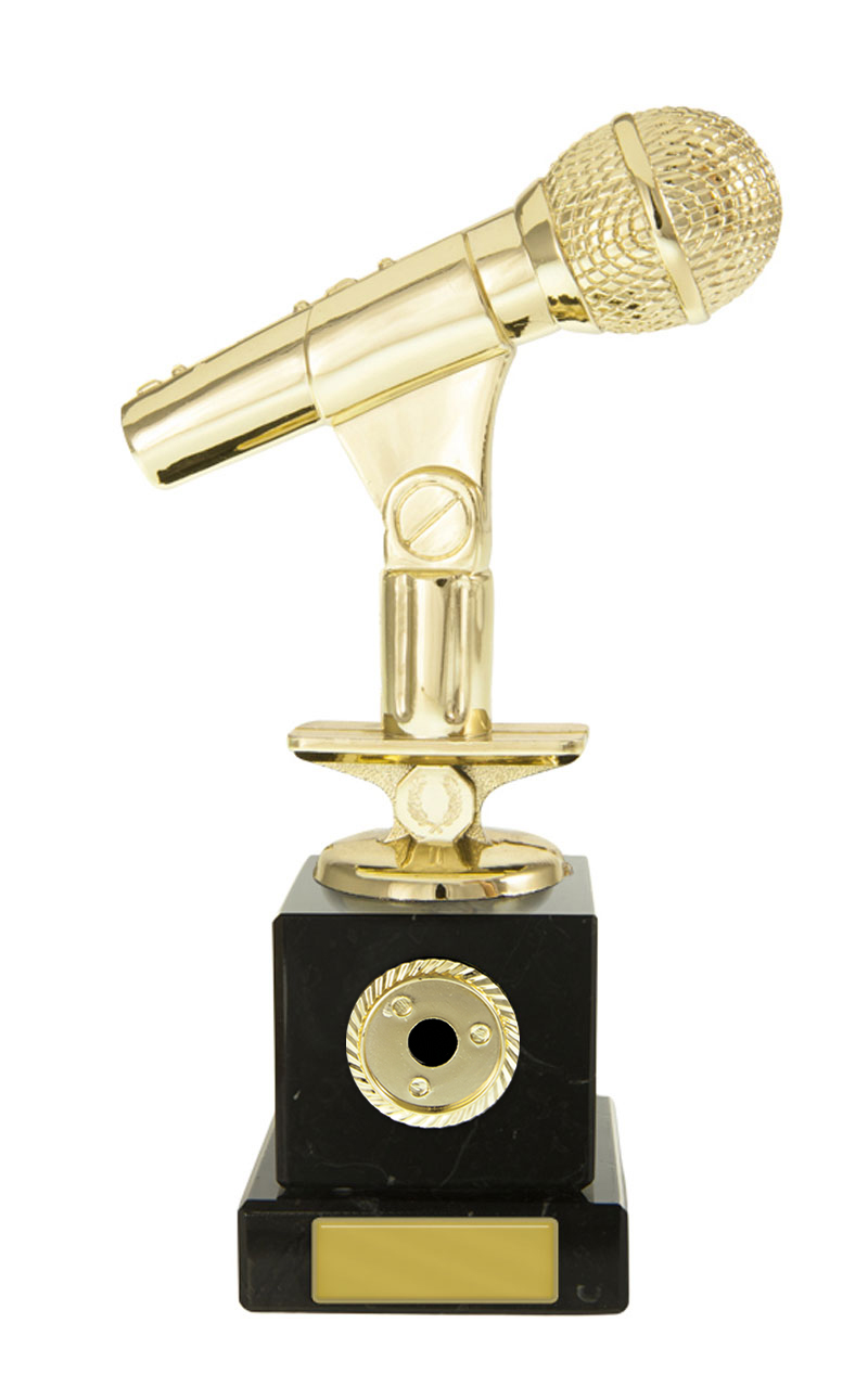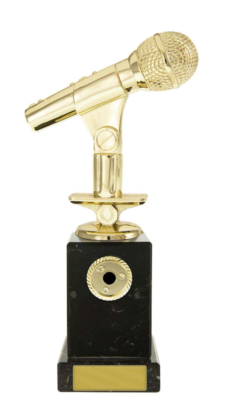 With its striking gold microphone and substantial black base, this music award trophy is crafted to make a lasting impression. The rectangular platform offers a stable, elegant foundation, while the microphone design recognises excellence in music, singing, podcasting, or corporate achievement.