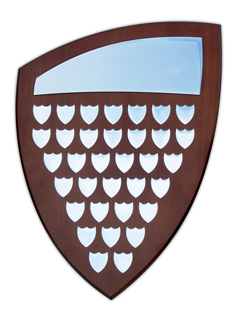 Custodian Rosewood Shield with Shadow Plates, 50mm Centre & Engraved Ribbon