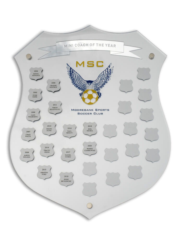 The Lumina Perpetual Shield offers a professional and elegant solution for ongoing recognition in any setting. Designed for repeated achievements, this perpetual shield features a refined shield shape, crafted for durability and visual impact. Its spacious layout is ideal for commemorating annual winners or honourees, making it a trusted choice for schools, clubs, and corporate teams seeking a lasting record of distinction.