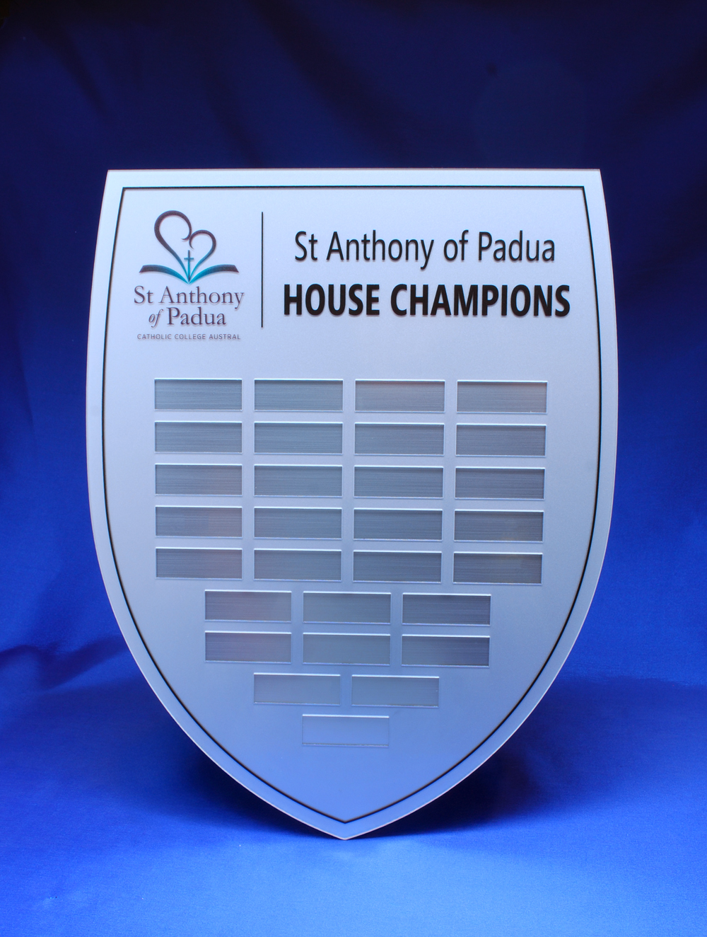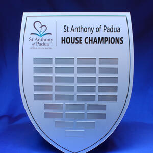 This contemporary perpetual shield offers a refined platform for ongoing recognition in corporate, academic, or community settings. Designed for modern appeal, it features a sleek silhouette and a premium finish, providing durability and style. Ideal for annual awards or honour rolls, the perpetual shield allows for memorable, professional celebration of achievement over time.