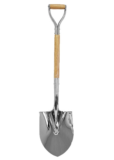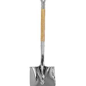 This premium full-sized groundbreaking shovel features a chrome-plated steel blade with matching handle trims and a natural timber handle, making it a striking centrepiece for sod-turning ceremonies. Built for corporate milestones, it is a fully functional shovel crafted to the highest standard for building launches, mine openings, and landmark events.