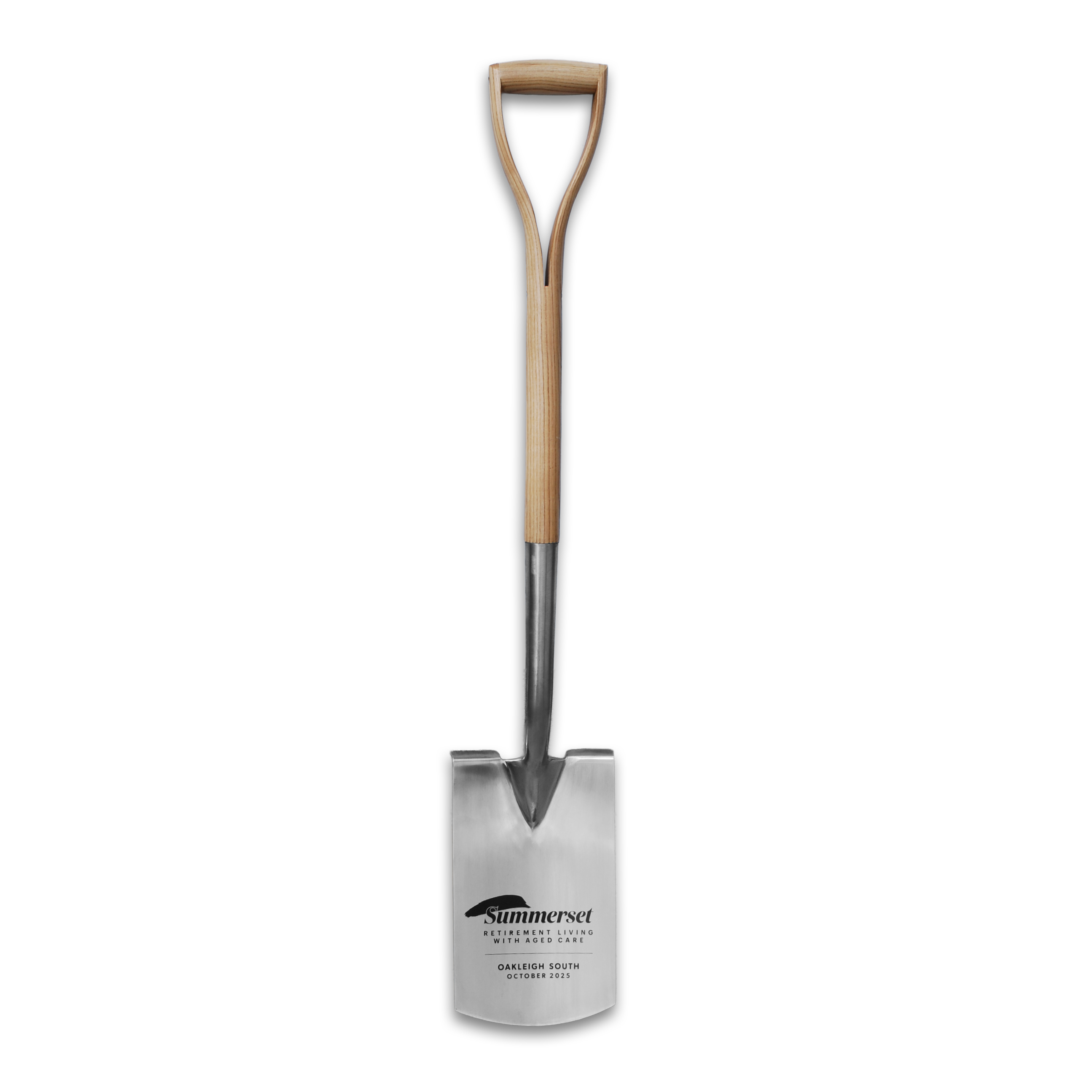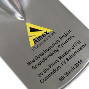 This premium, full-sized, groundbreaking shovel features a pure stainless steel blade and a natural timber handle, making it a striking centrepiece for sod-turning ceremonies. Purpose-built for corporate milestones, it is a fully functional shovel crafted to the highest standard for building launches, mine openings, and landmark events.