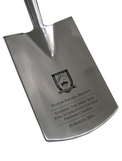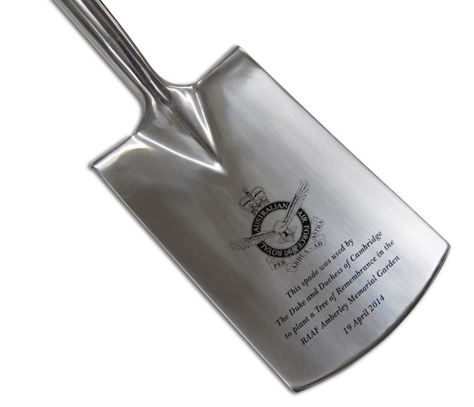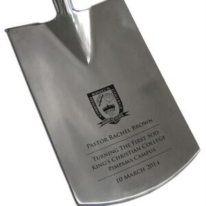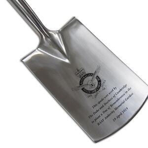 We utilise a permanent, high-quality Etch and Paintfill process to achieve the best possible finish. We don't print or laser engrave; only the highest standards here of your groundbreaking shovels.
