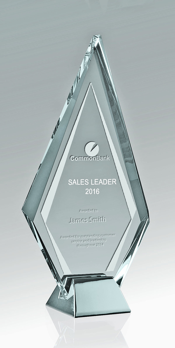 We use Superior Sandblast engraving or high-resolution full-colour printing to achieve striking results on our glass awards and trophies.